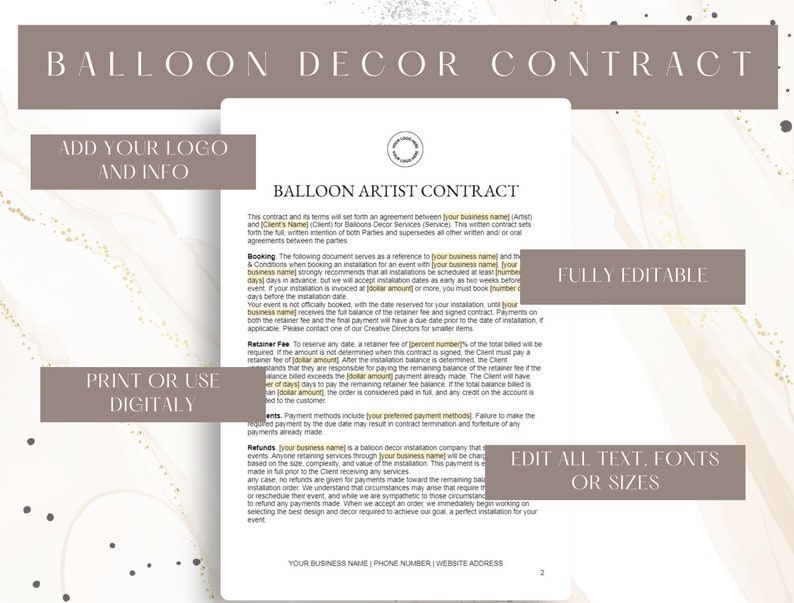 Editable Balloon Artist Contract Template Balloon Decor Etsy
