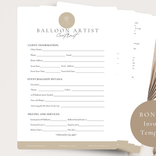 Balloon Artist Contract Template Attorney written Editable Etsy