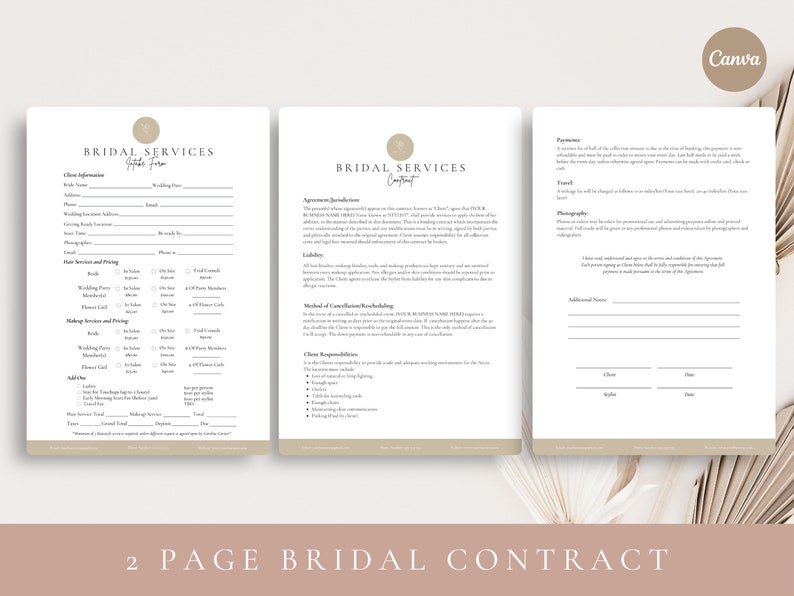Bridal Styling and Professional Makeup Contract Template Etsy