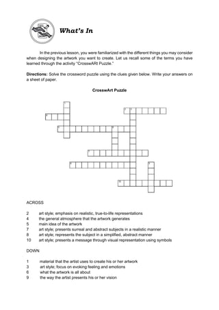 Representations Crossword Puzzle