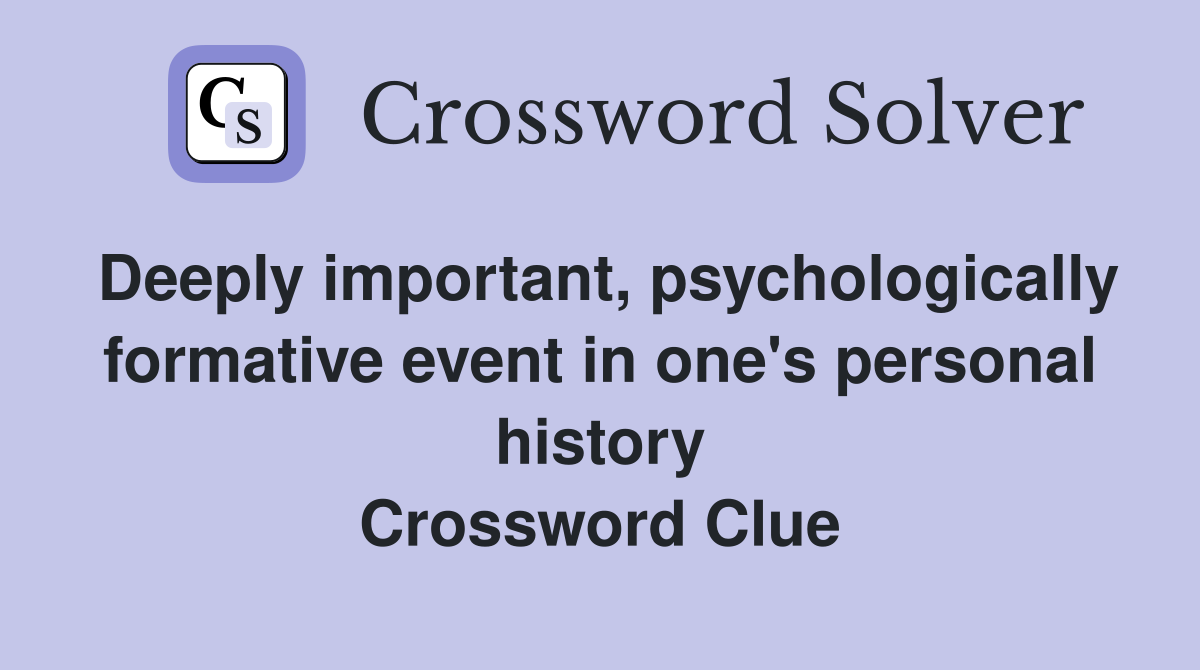 Deeply important psychologically formative event in one s personal
