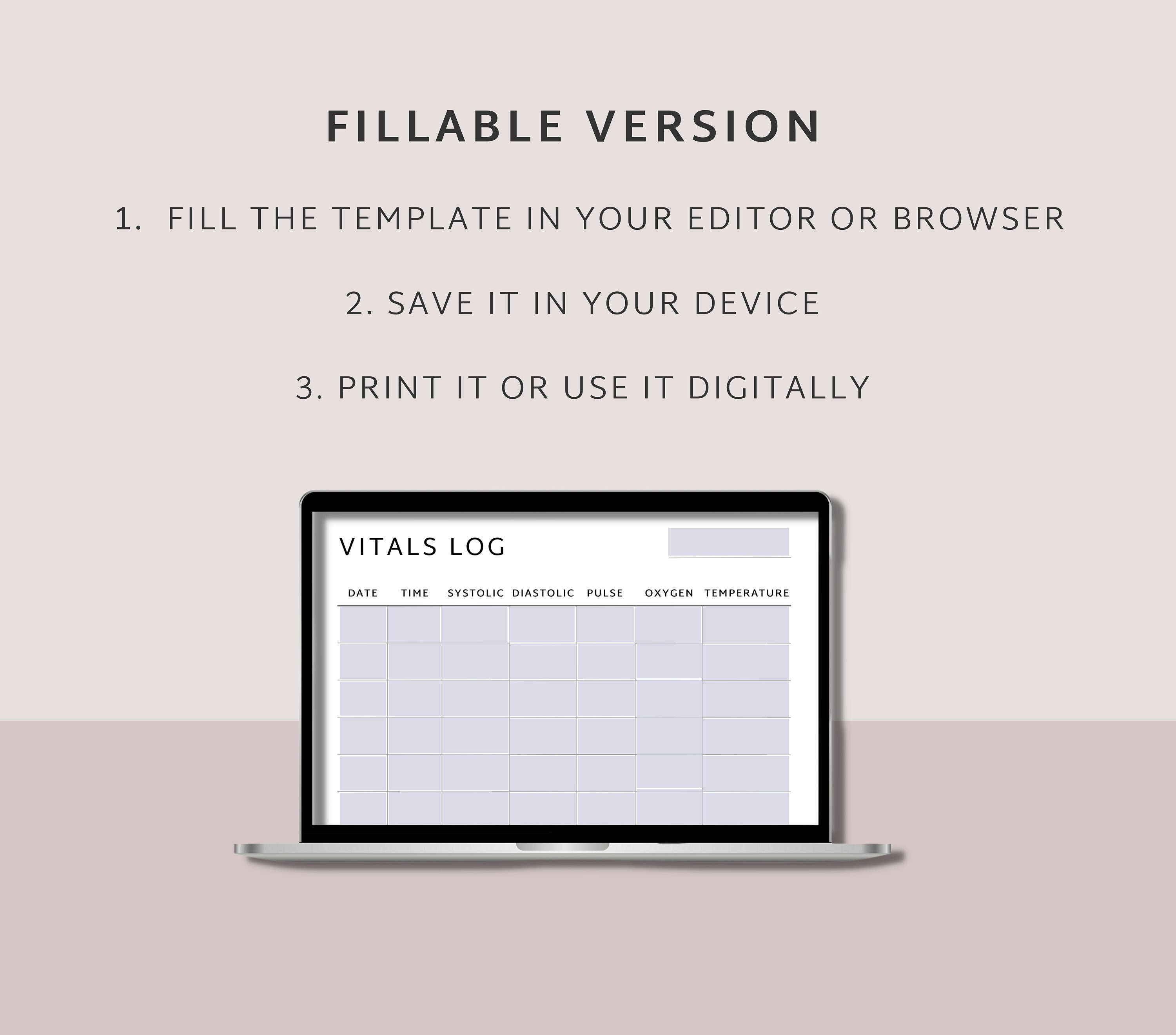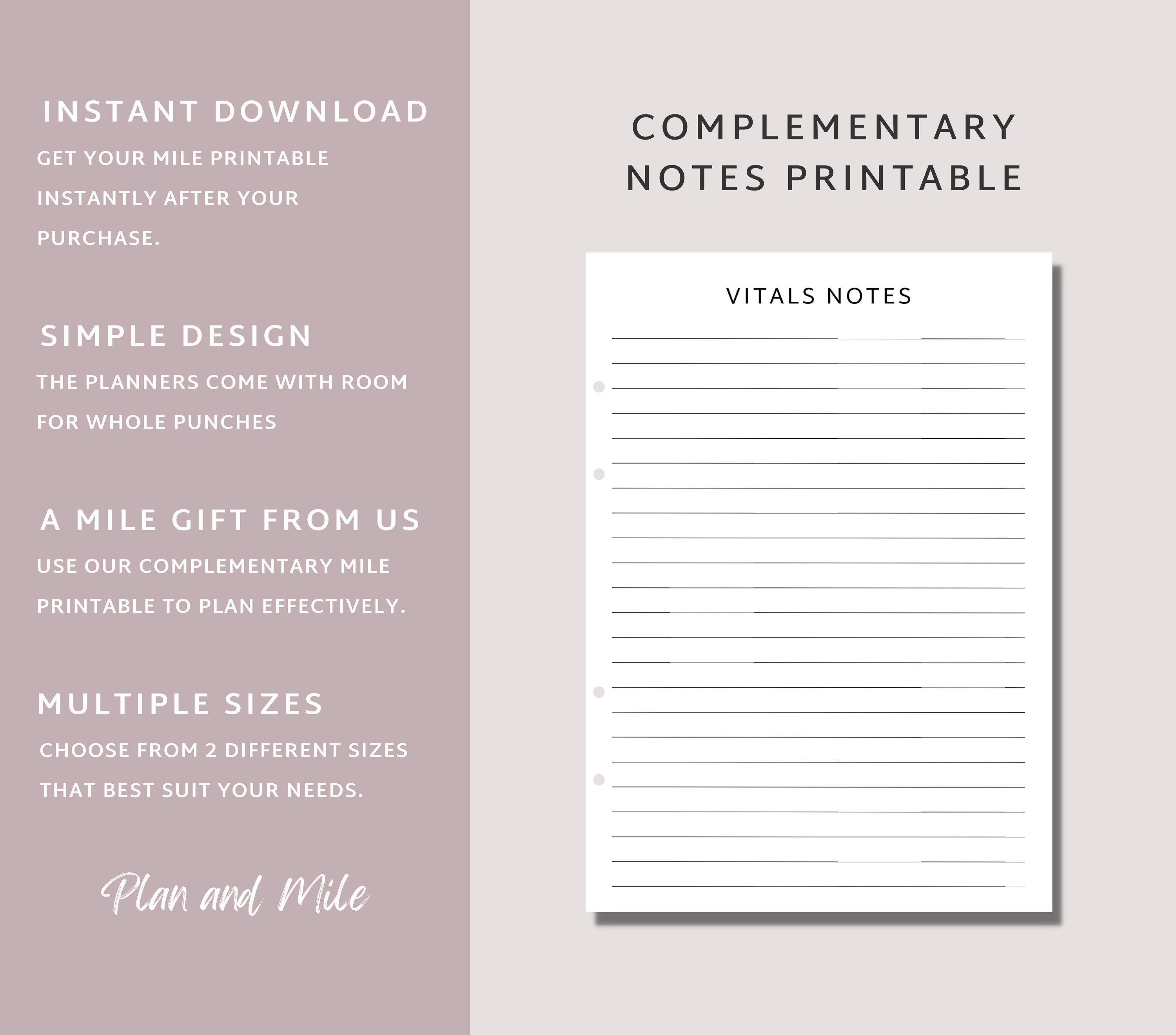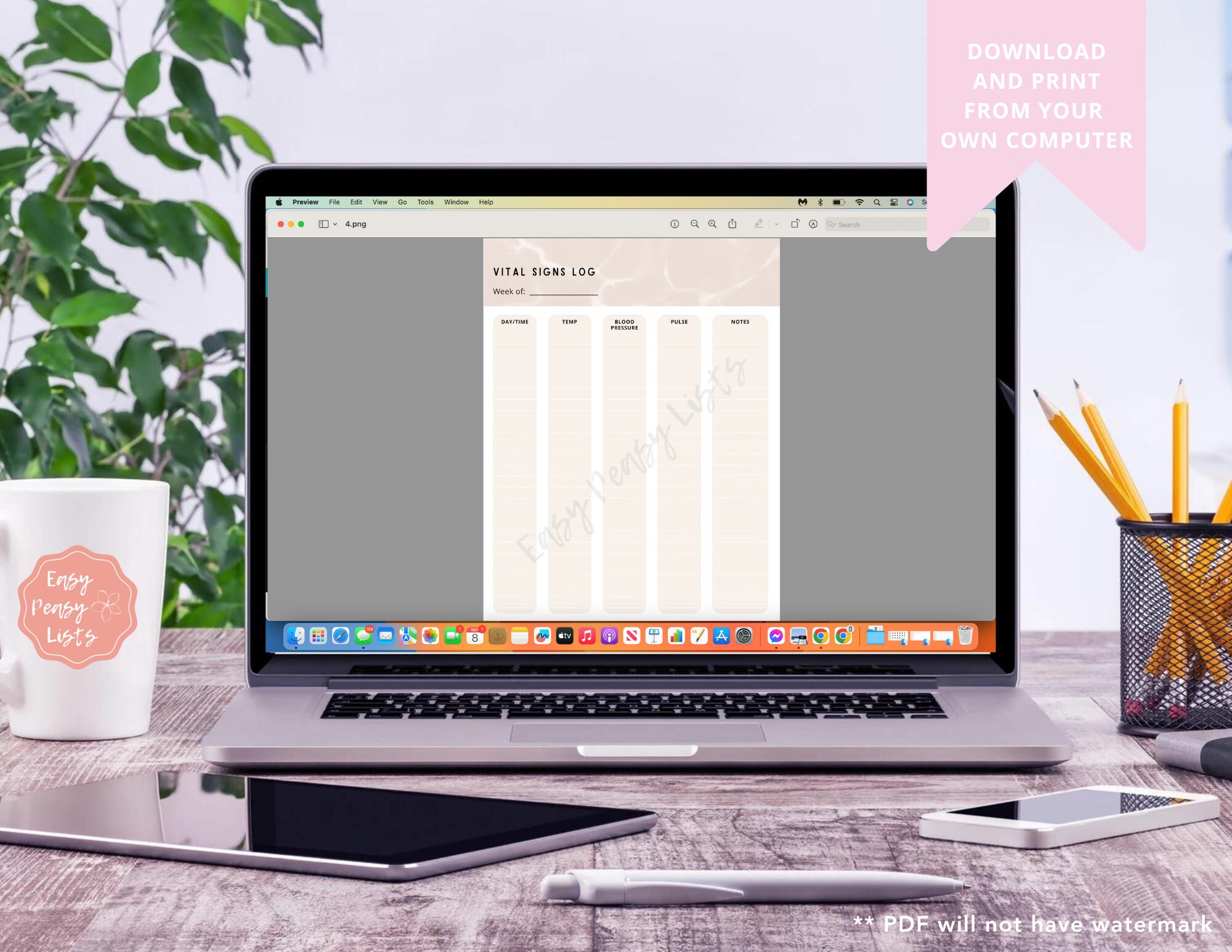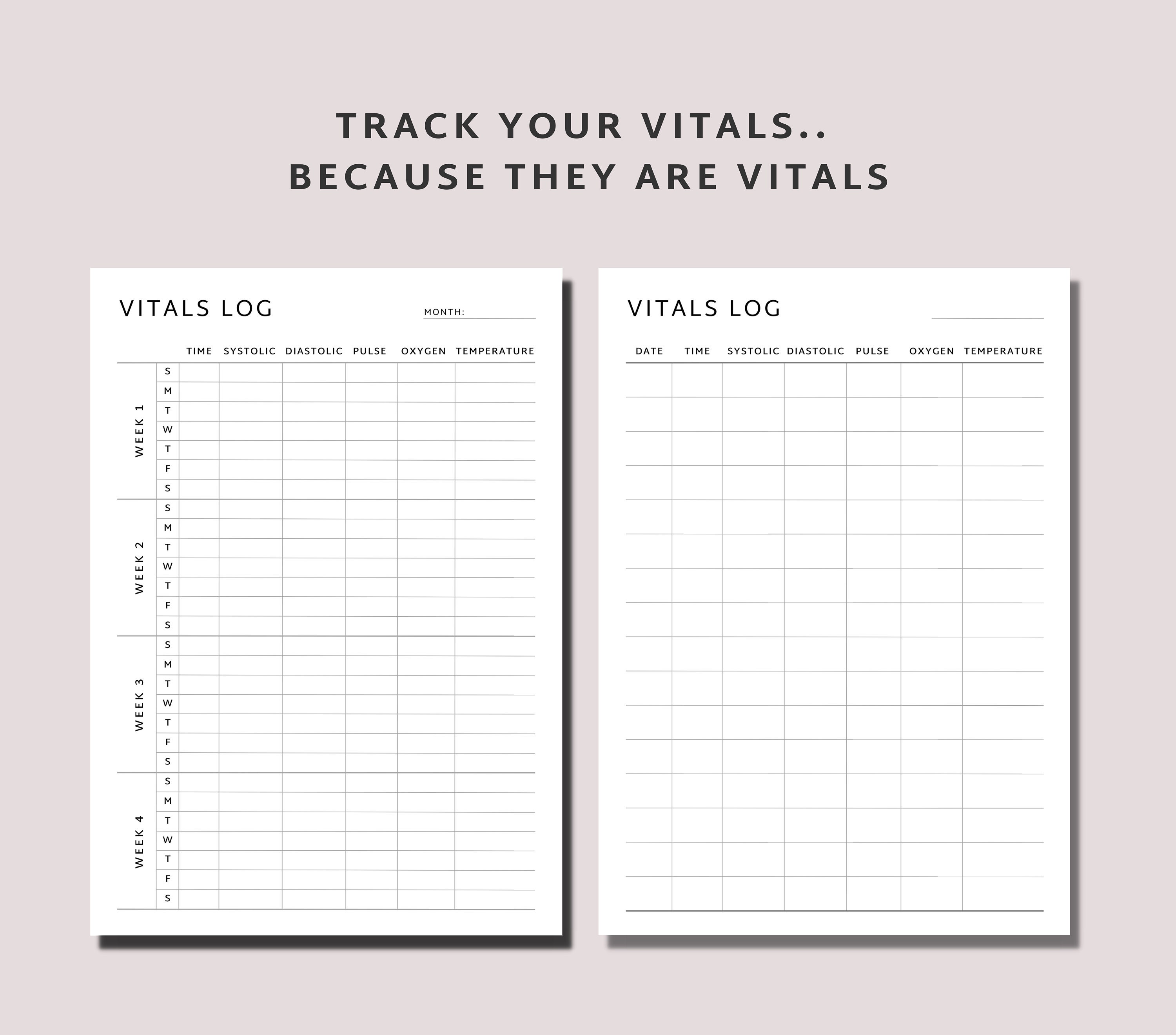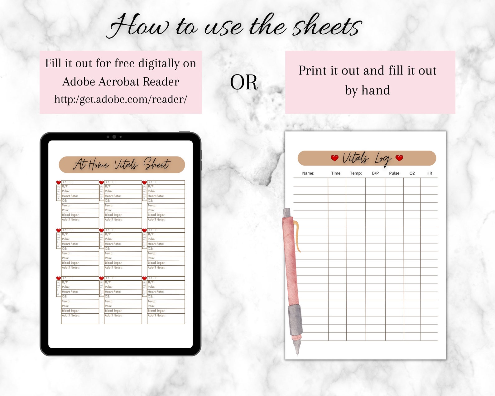Printable Vital Sign Log Sheet Vitals Planner Vitals Log Template