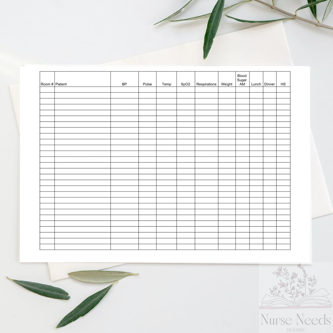Printable Vitals Sheet for Nurses SNF Vitals LTC Vital Sheet W/room