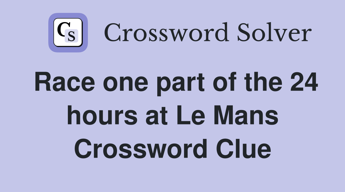 Race one part of the 24 hours at Le Mans Crossword Clue Answers