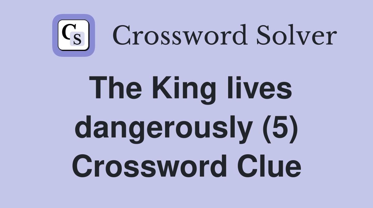 The King lives dangerously (5) Crossword Clue Answers Crossword Solver