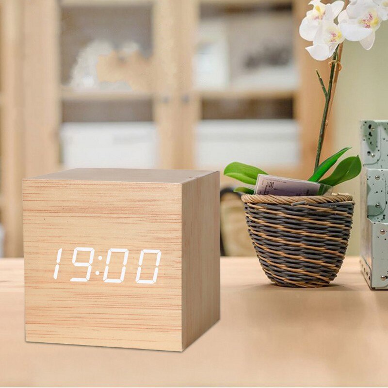wall clock glow in the dark Wooden Voice Activated USB Alarm Clock With