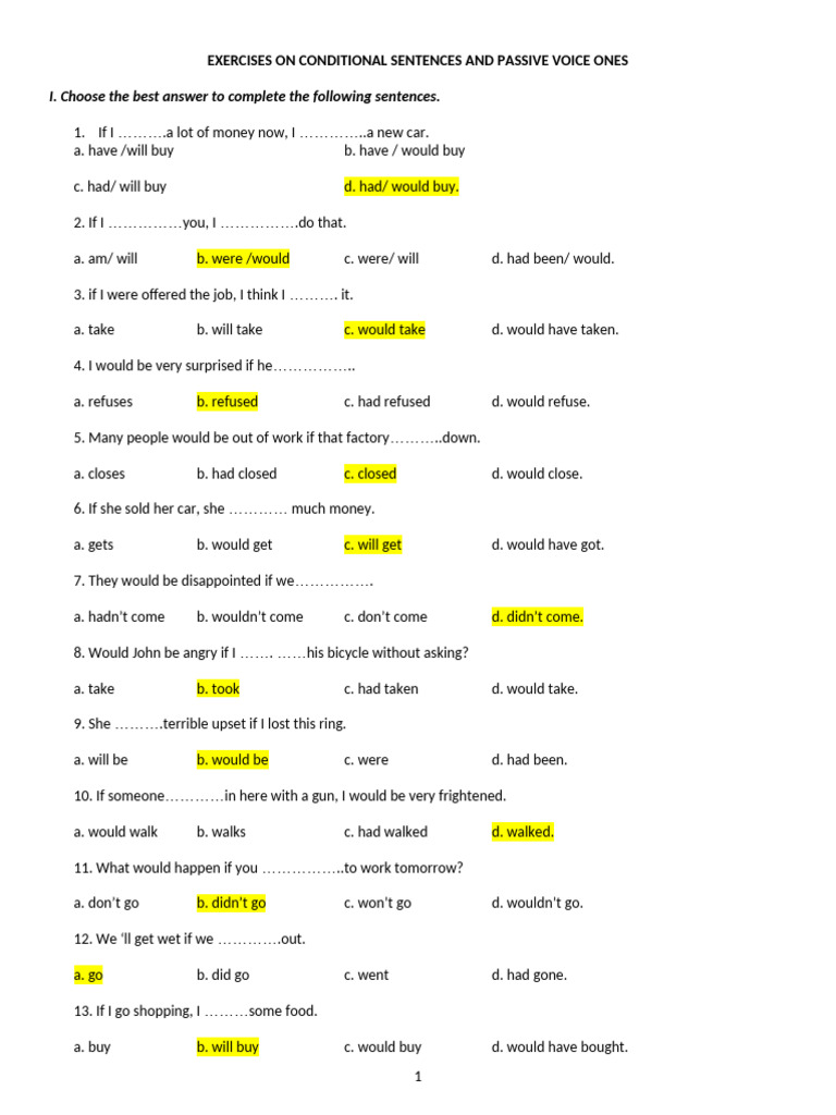 Exercises On Conditional Sentences and Passive Voice Ones PDF