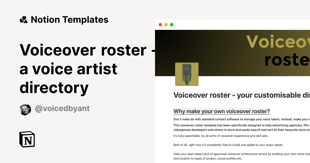 Voiceover roster a voice artist directory Template Notion Marketplace