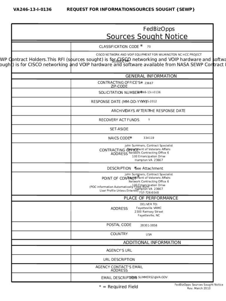 s RFI (sources sought) is for CISCO networking and VOIP Doc
