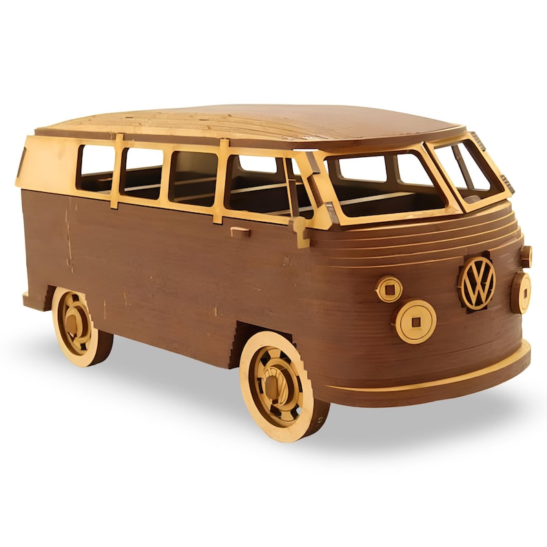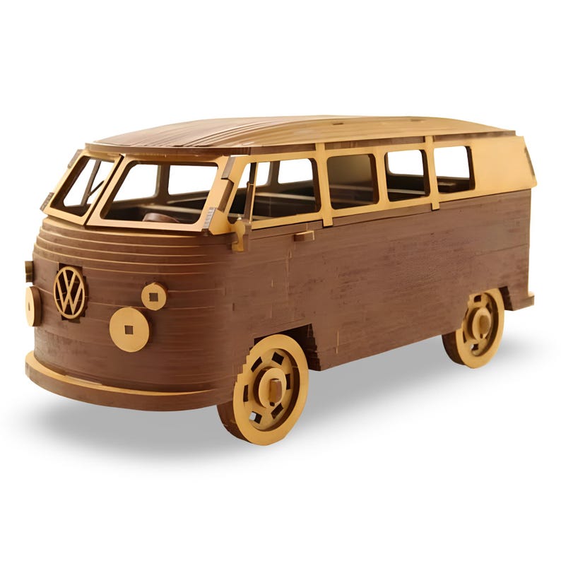 Wooden VW Bus Model Kit: 3D Laser Cut Vintage Campervan Puzzle Etsy