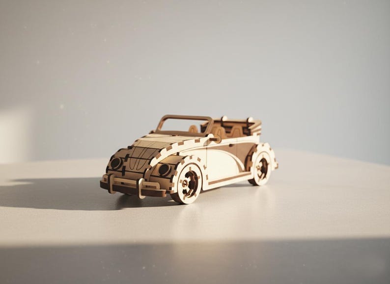 Laser Cut Wooden Volkswagen Beetle Cabrio 3D Puzzle Model With Assembly