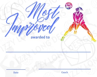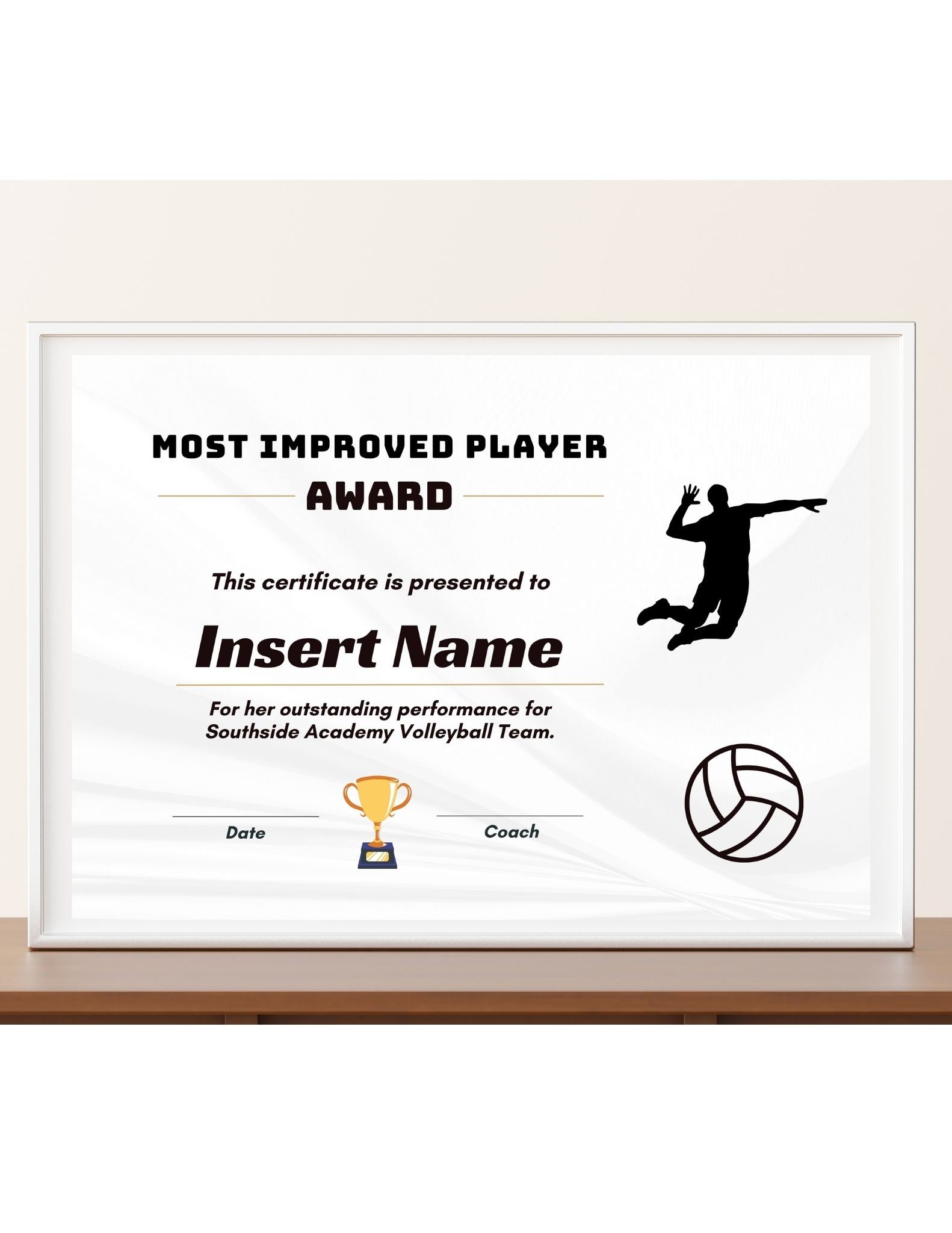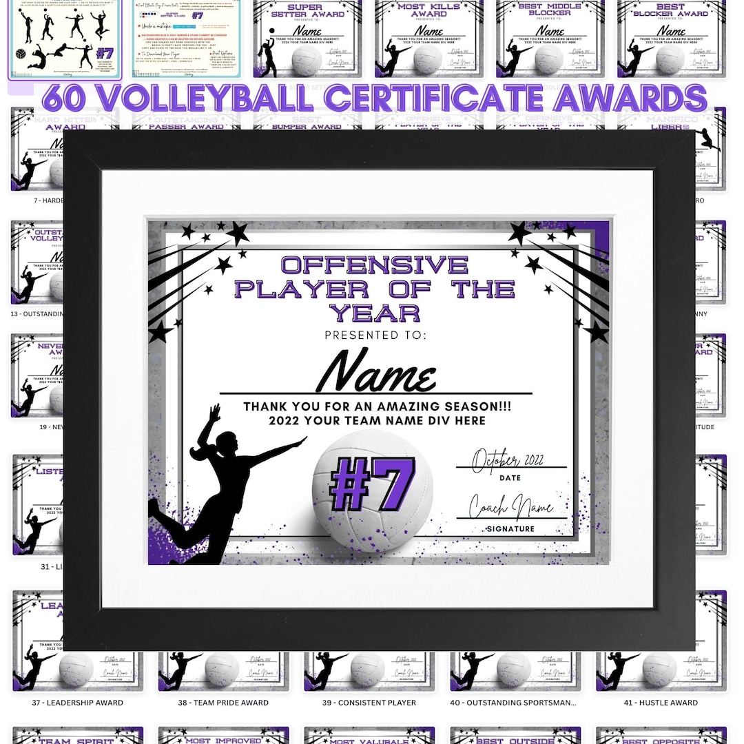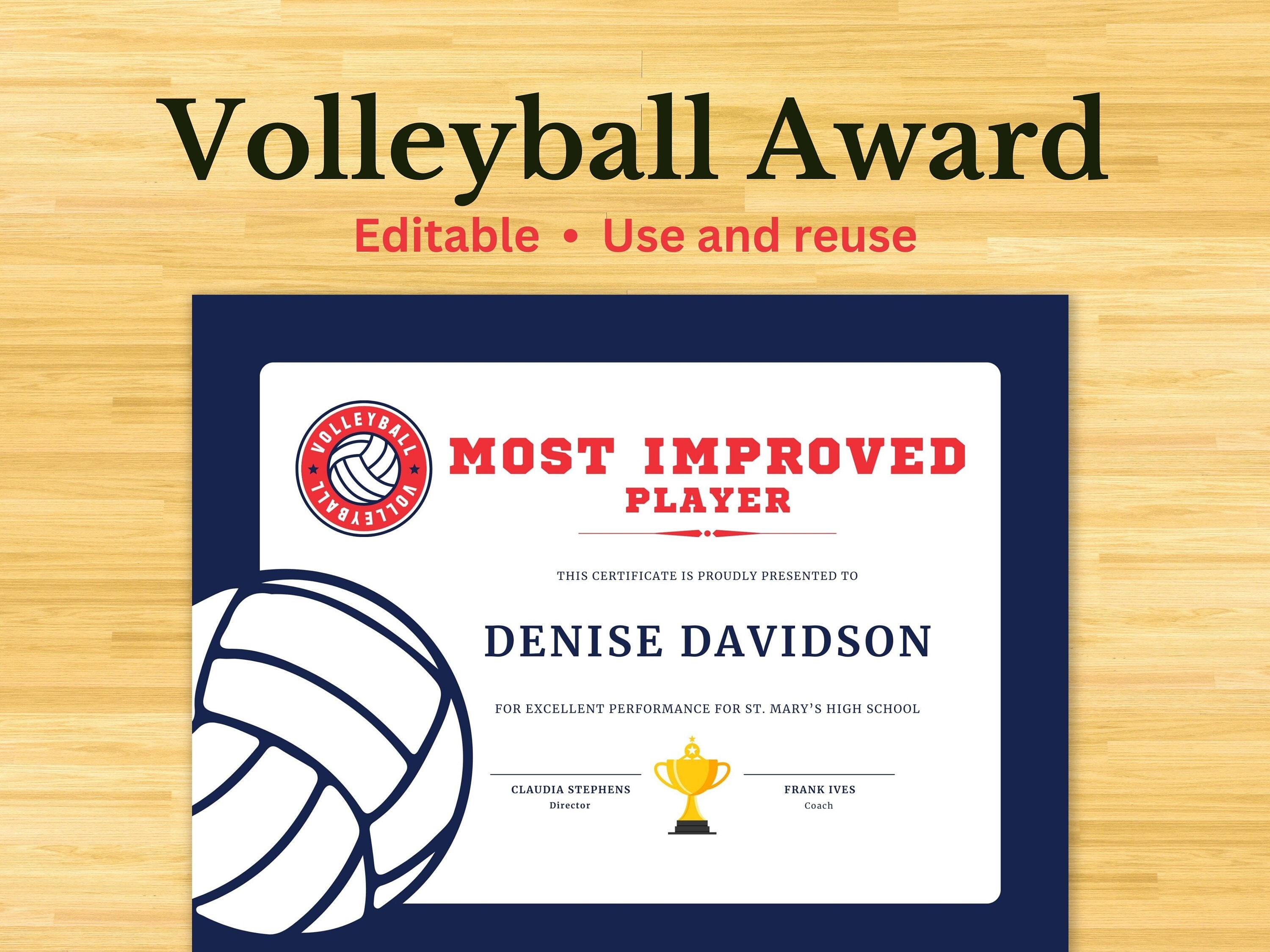 Editable Volleyball Award Certificate Volleyball End of Season Awards