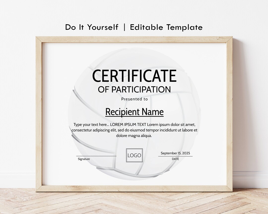 EDITABLE Volleyball Certificate Template Sport Certificate Award