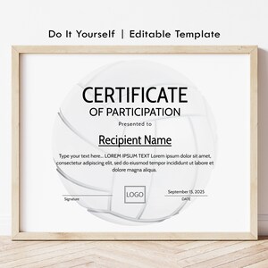 Editable Volleyball Certificate Award Canva Templateprintable Etsy