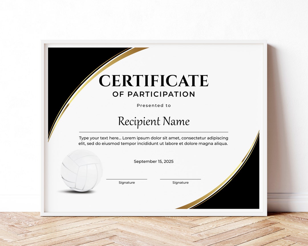 Volleyball Certificate Award Diploma Sport Cup Winner Appreciation