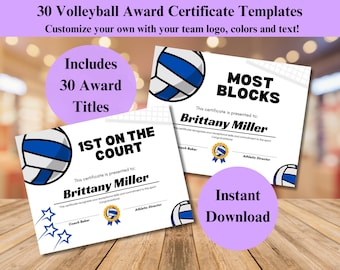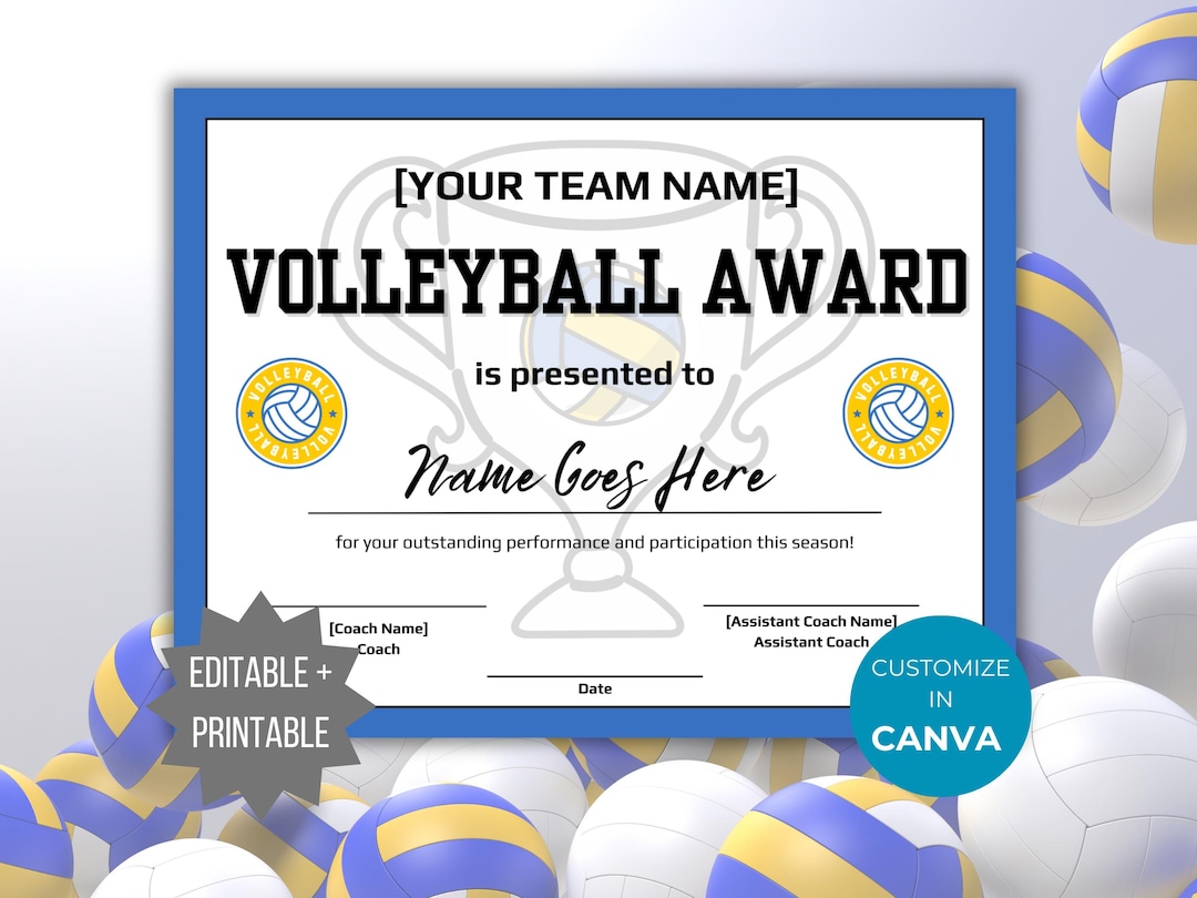 50 Volleyball Award Certificates Printable Editable Canva Templates