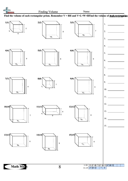 Finding Volume Of Rectangular Prisms Worksheet printable pdf download