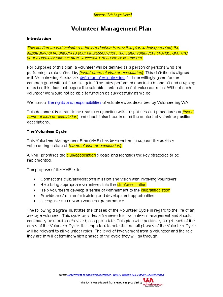 Volunteer Management Plan Template