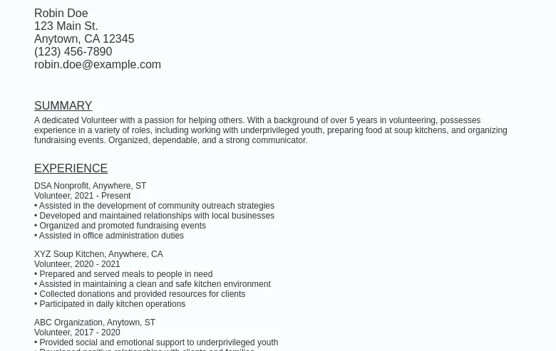 Volunteer Resume Examples and Templates for 2025 ResumeBuilder com