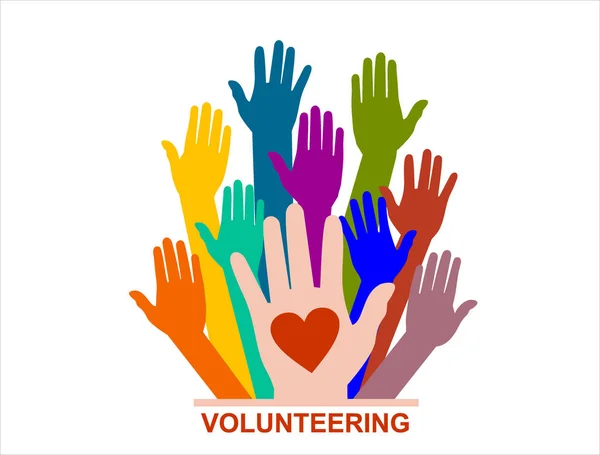 Premium Vector Colored volunteer crowd hands hand drawing lettering