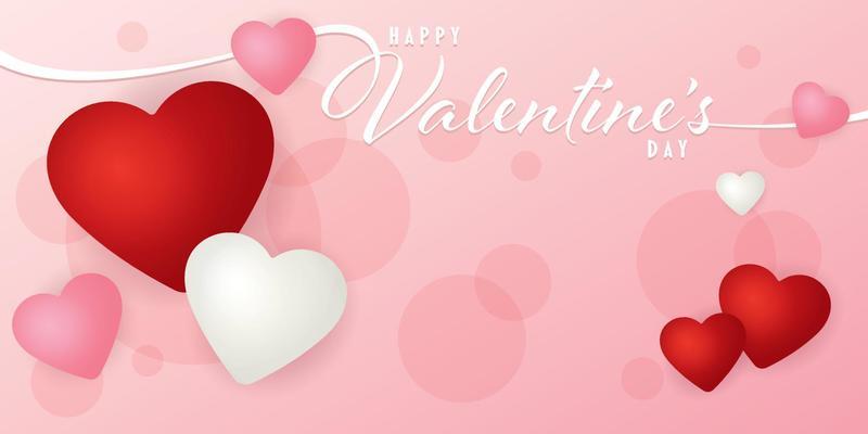 Happy Valentine`s Day Calligraphy with Red White and Pink Heart