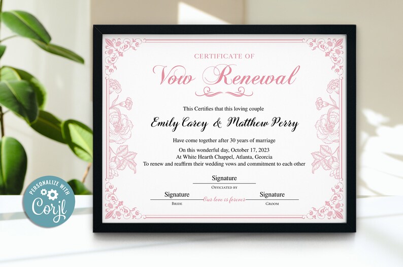 Editable vow renewal certificate template Artofit