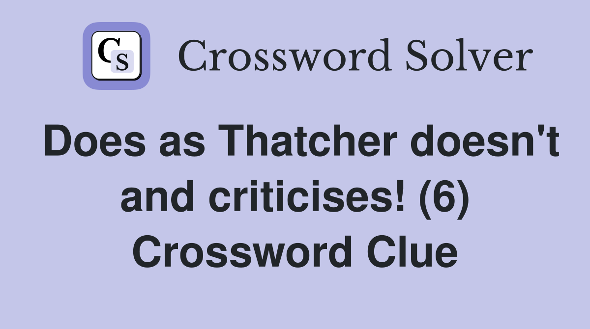 Does as Thatcher doesn #39 t and criticises (6) Crossword Clue Answers