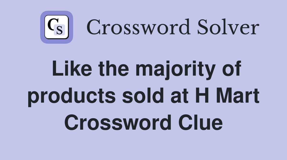 Like the majority of products sold at H Mart Crossword Clue Answers