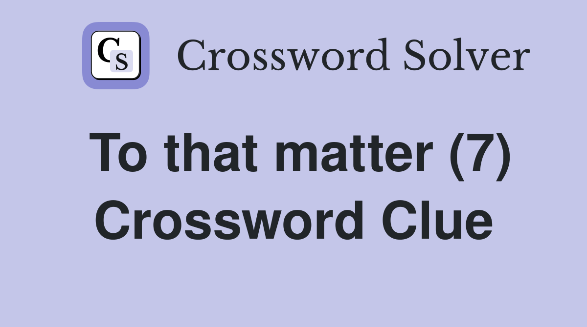 To that matter (7) Crossword Clue Answers Crossword Solver