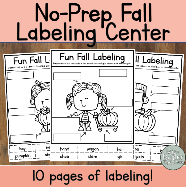 NO PREP November Labeling Center Printable Worksheet Kindergarten VPK