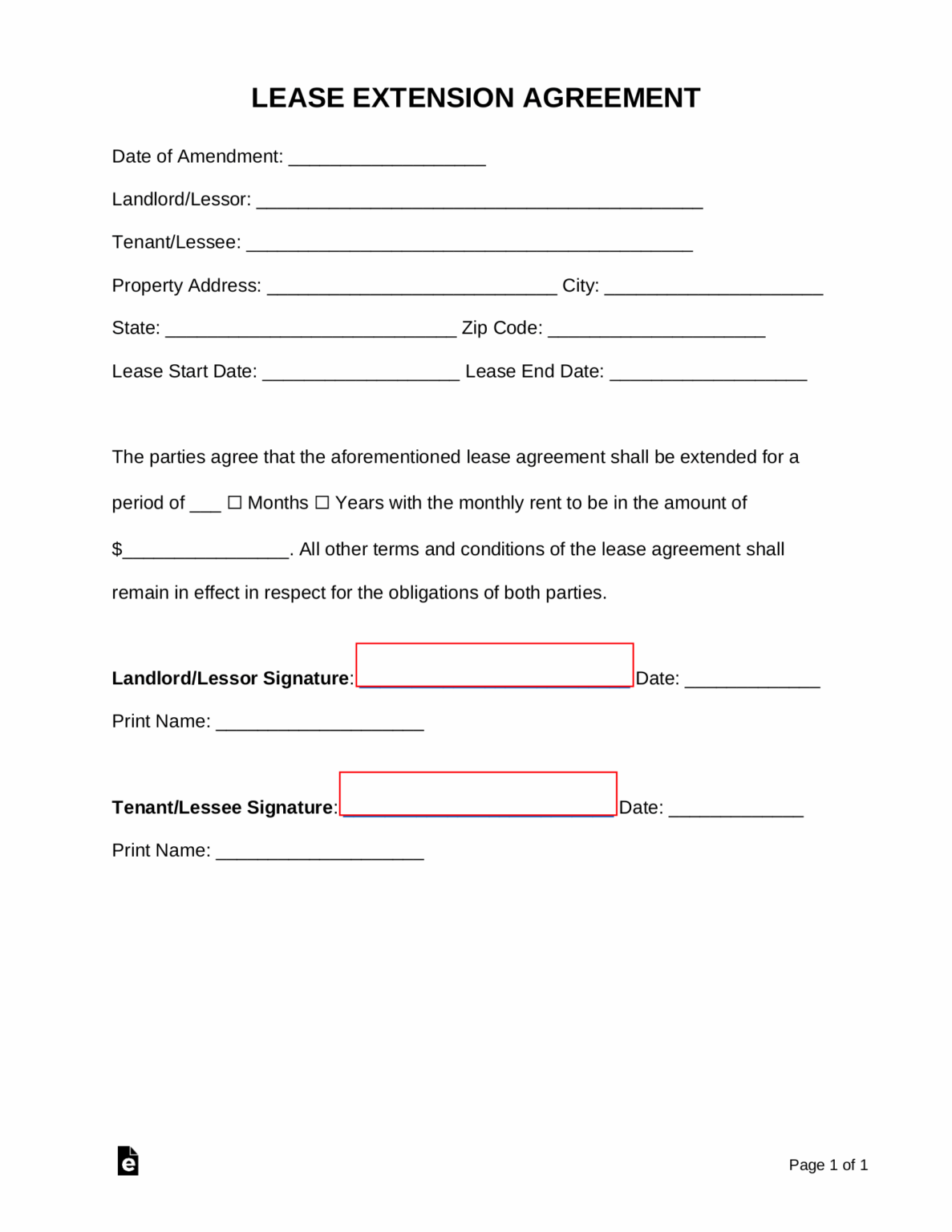 Extension Of Lease Agreement Template