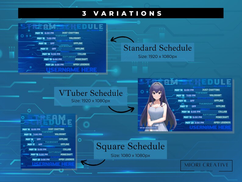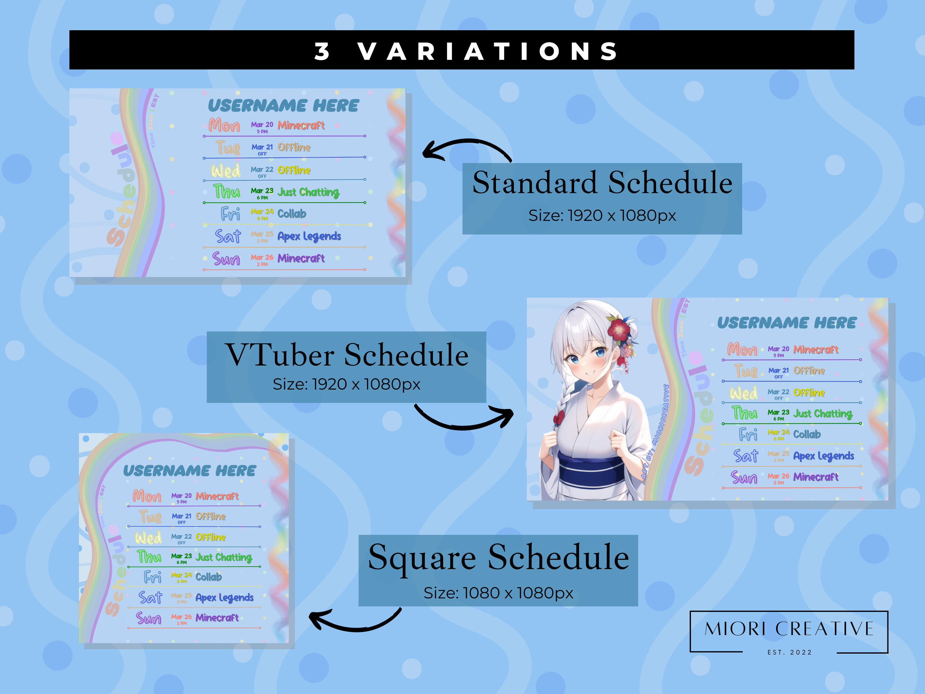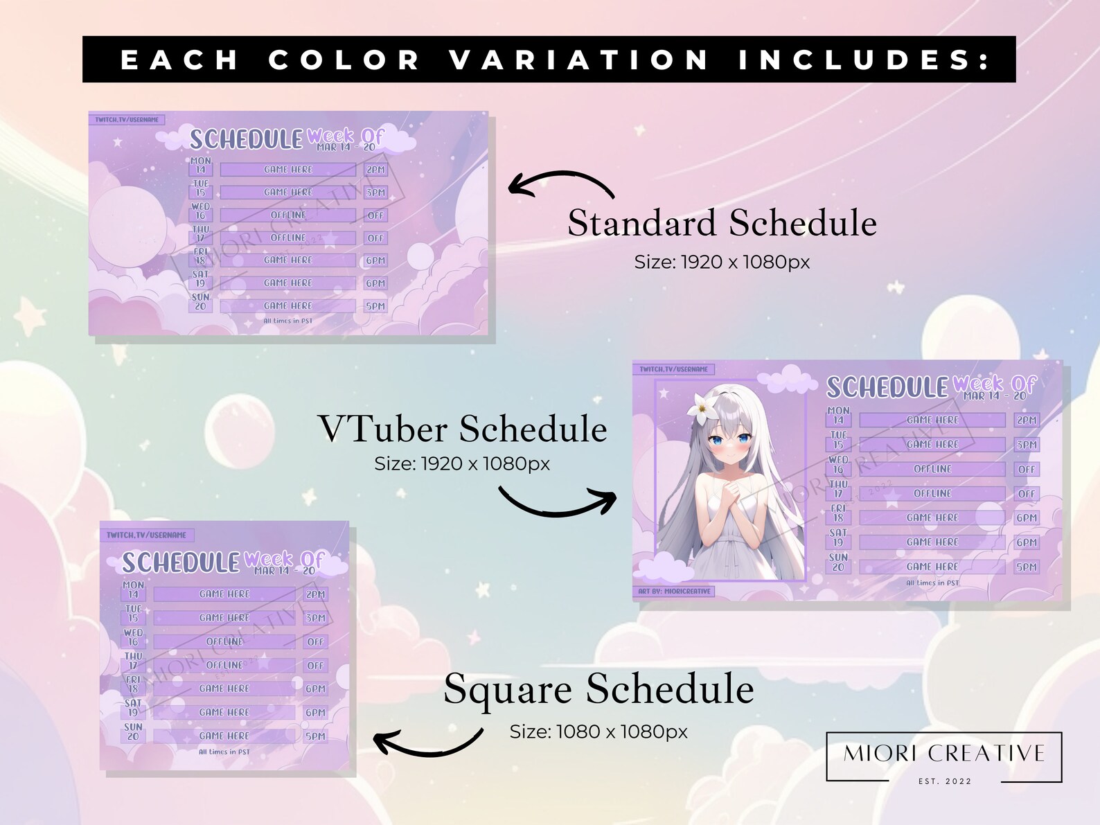 Schedule Template Stream Schedule Vtuber Vtuber Graphics Etsy