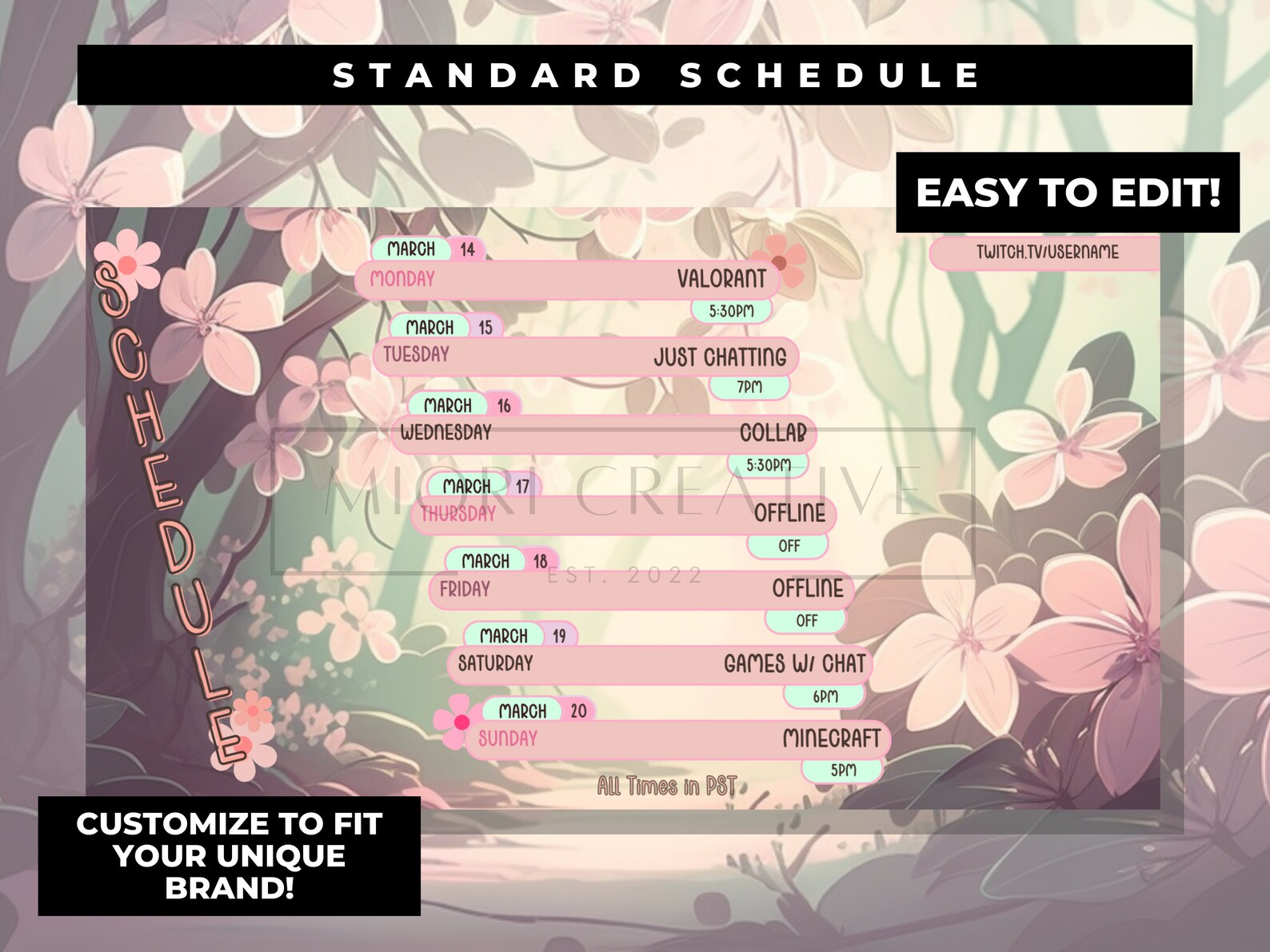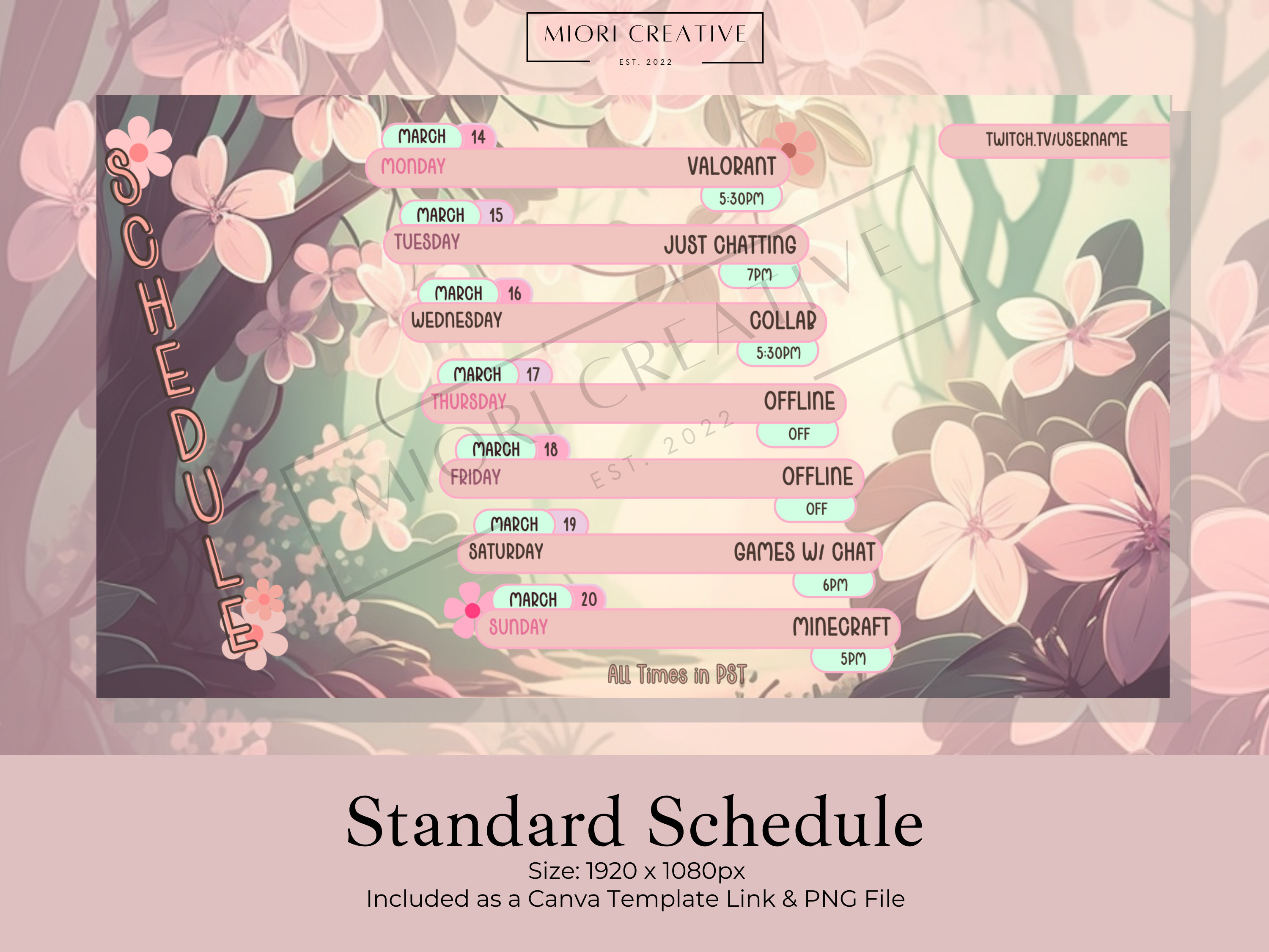 Pink Vtuber Stream Schedule Template Spring Twitch Schedules Floral