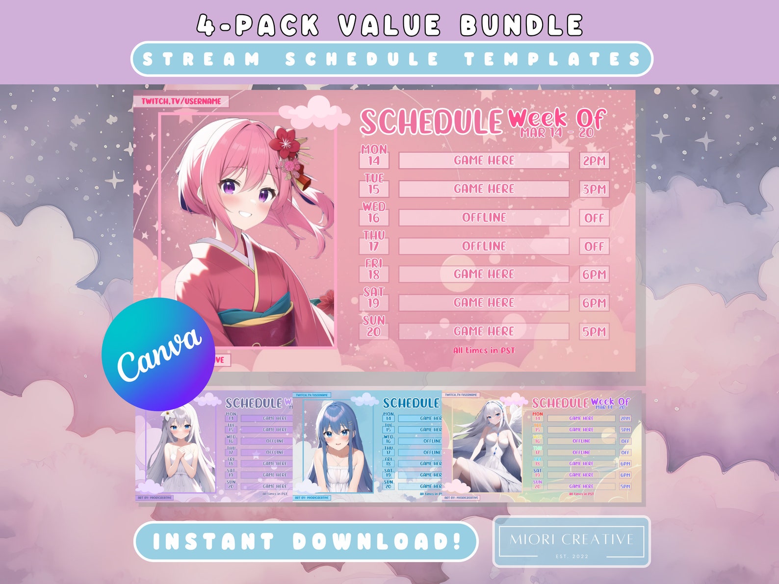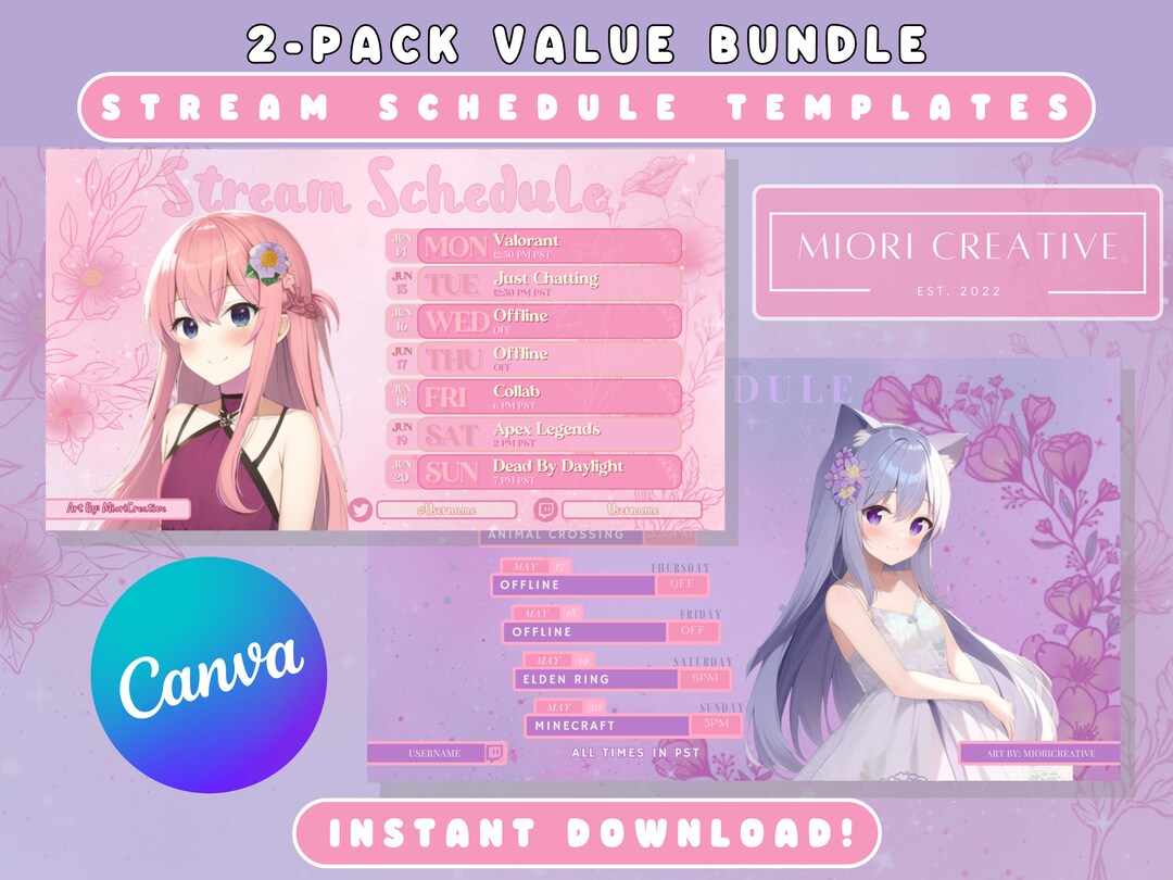 2 pack Pink Vtuber Schedule Template Cute Twitch Stream Etsy