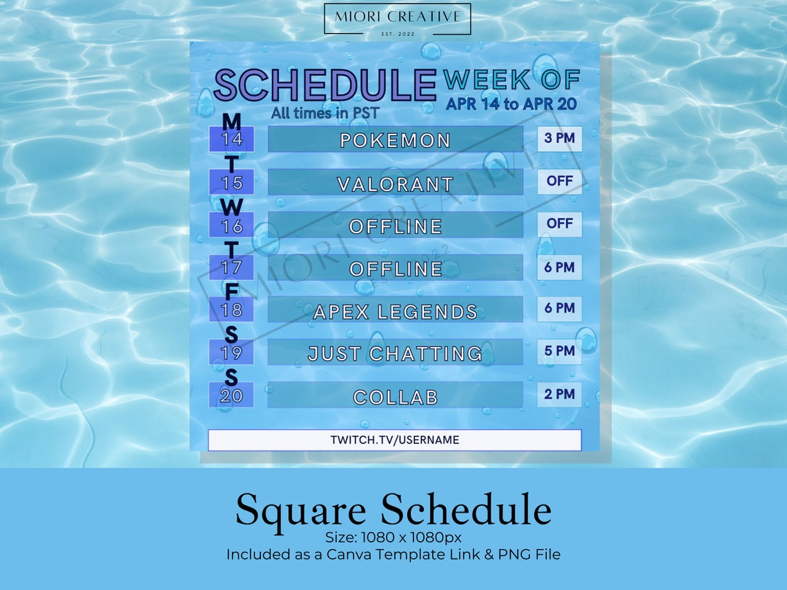 Water vtuber schedule template blue twitch stream schedule etsy Artofit