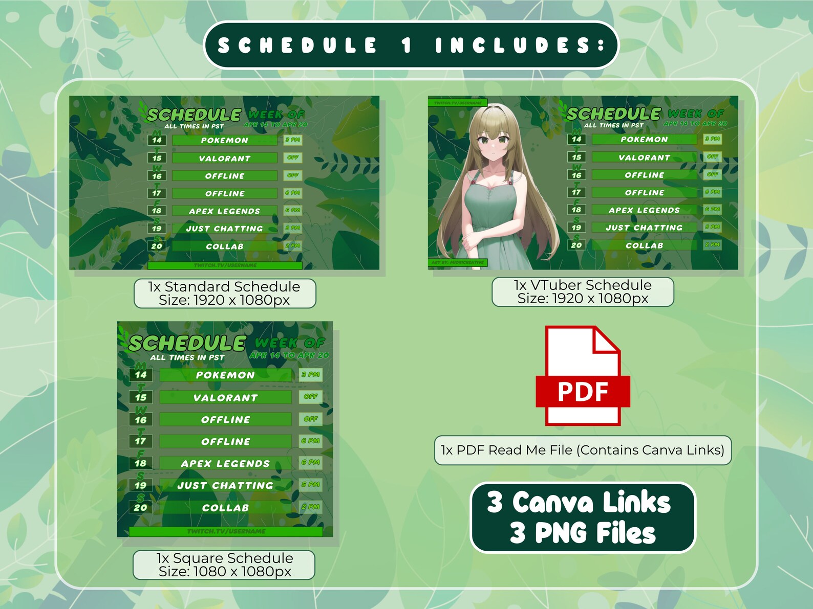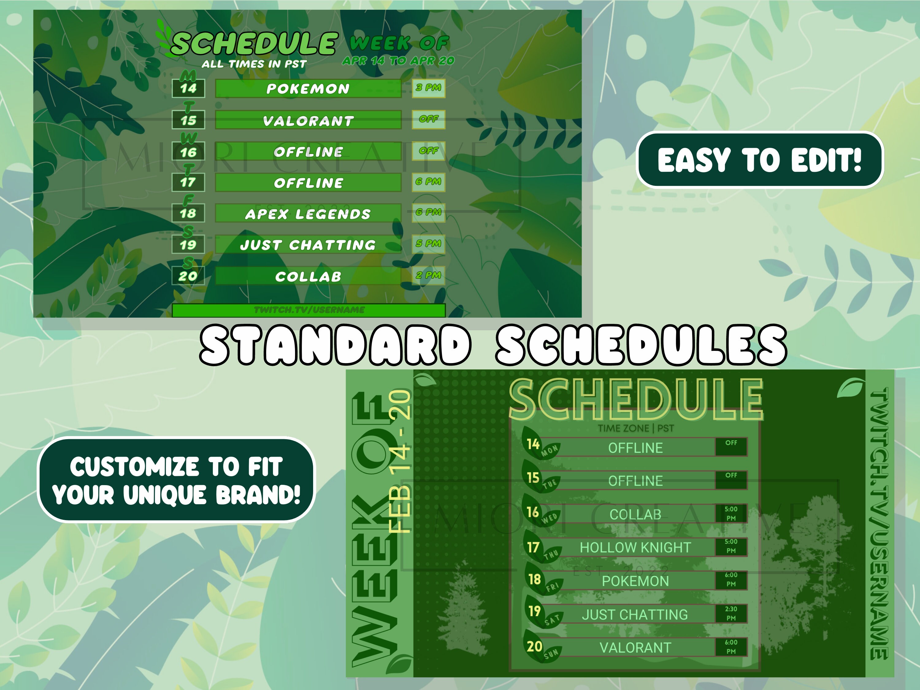 2 pack Nature Vtuber Schedule Template Green Vtuber Streaming Schedule