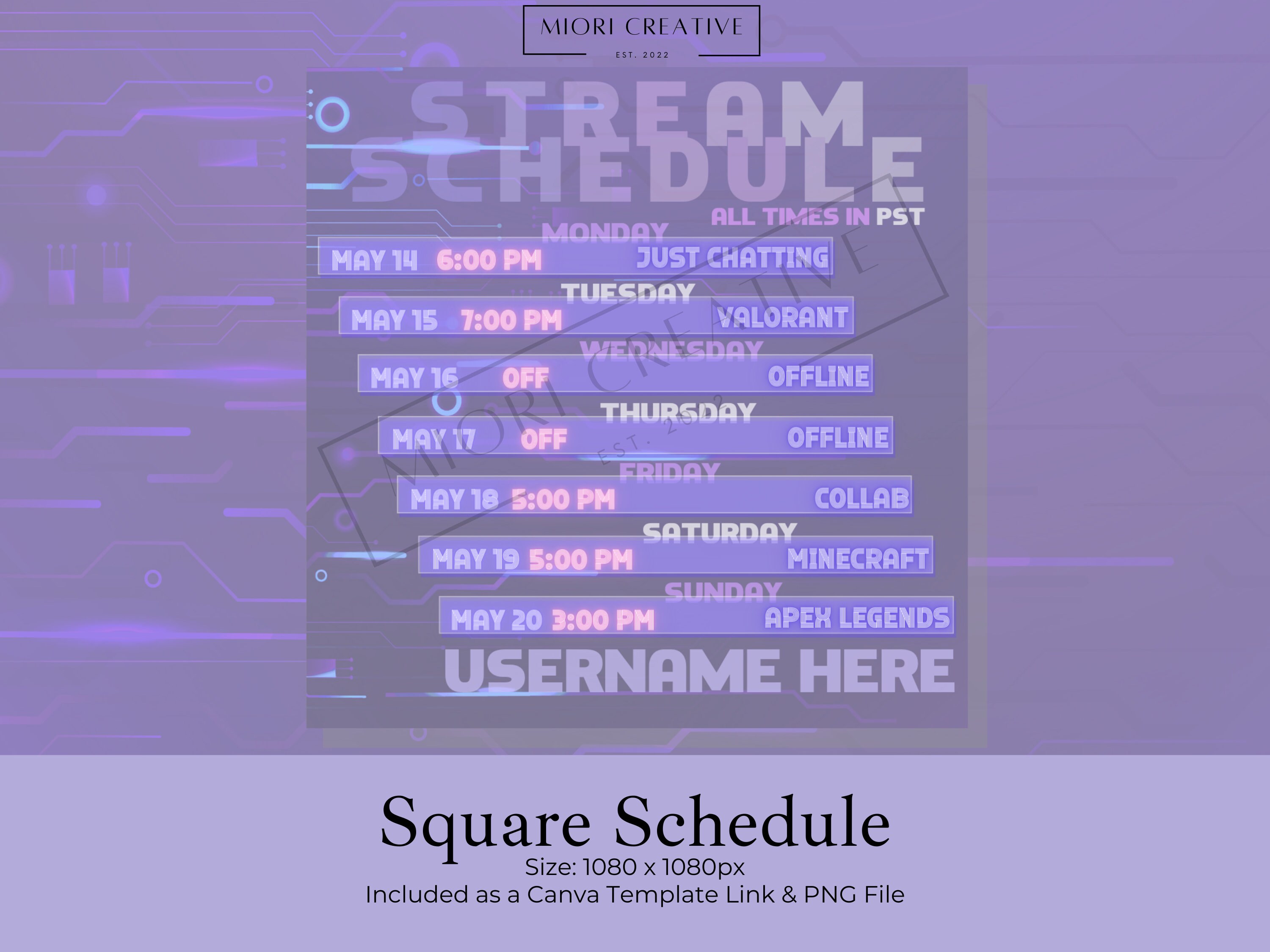 Vtuber Stream Schedule Template Festival Purple Etsy