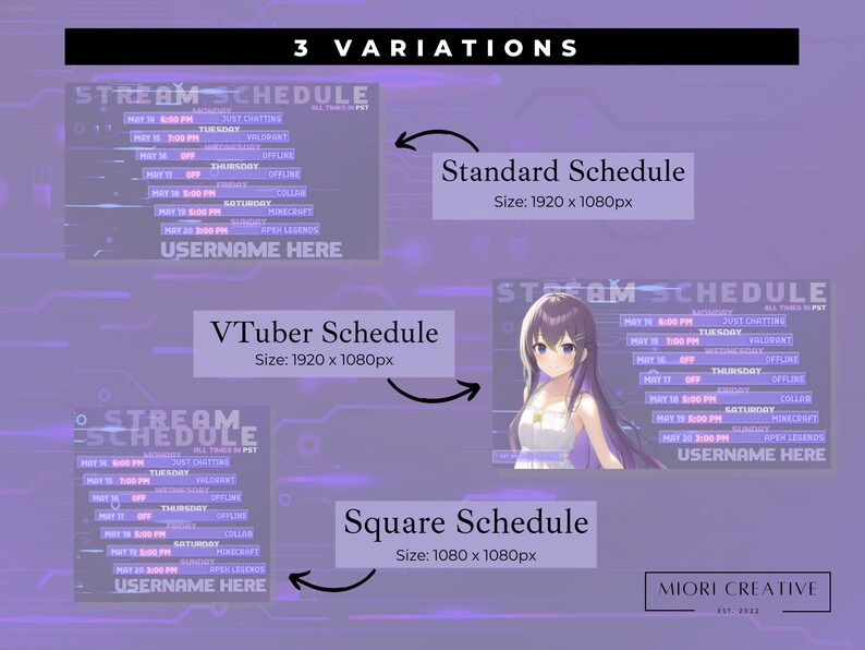 Purple Vtuber Schedule Template Vtuber Stream Schedule Vtubers Etsy