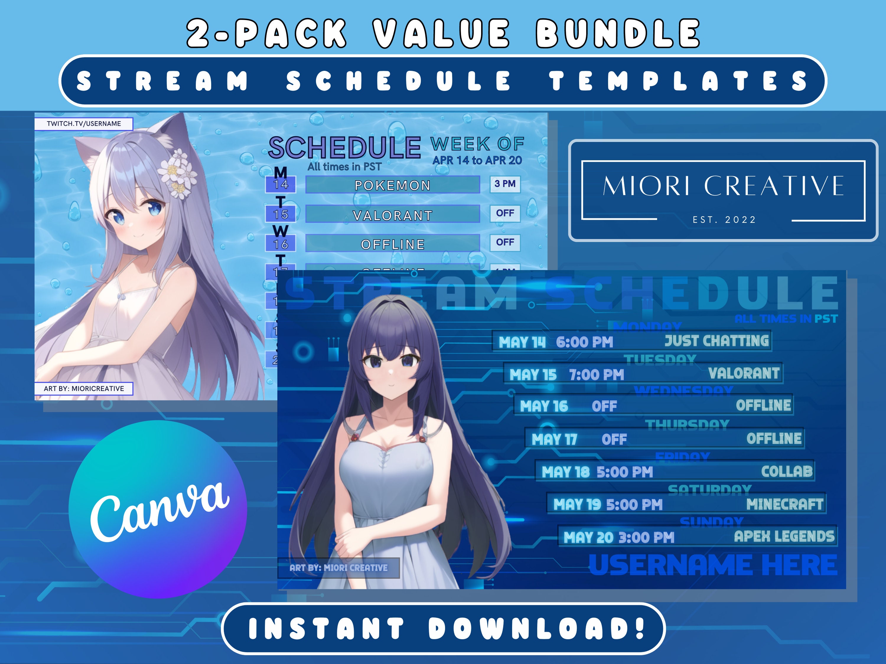 2 pack Blue Vtuber Schedule Template Twitch Stream Schedule Cyan Vtuber