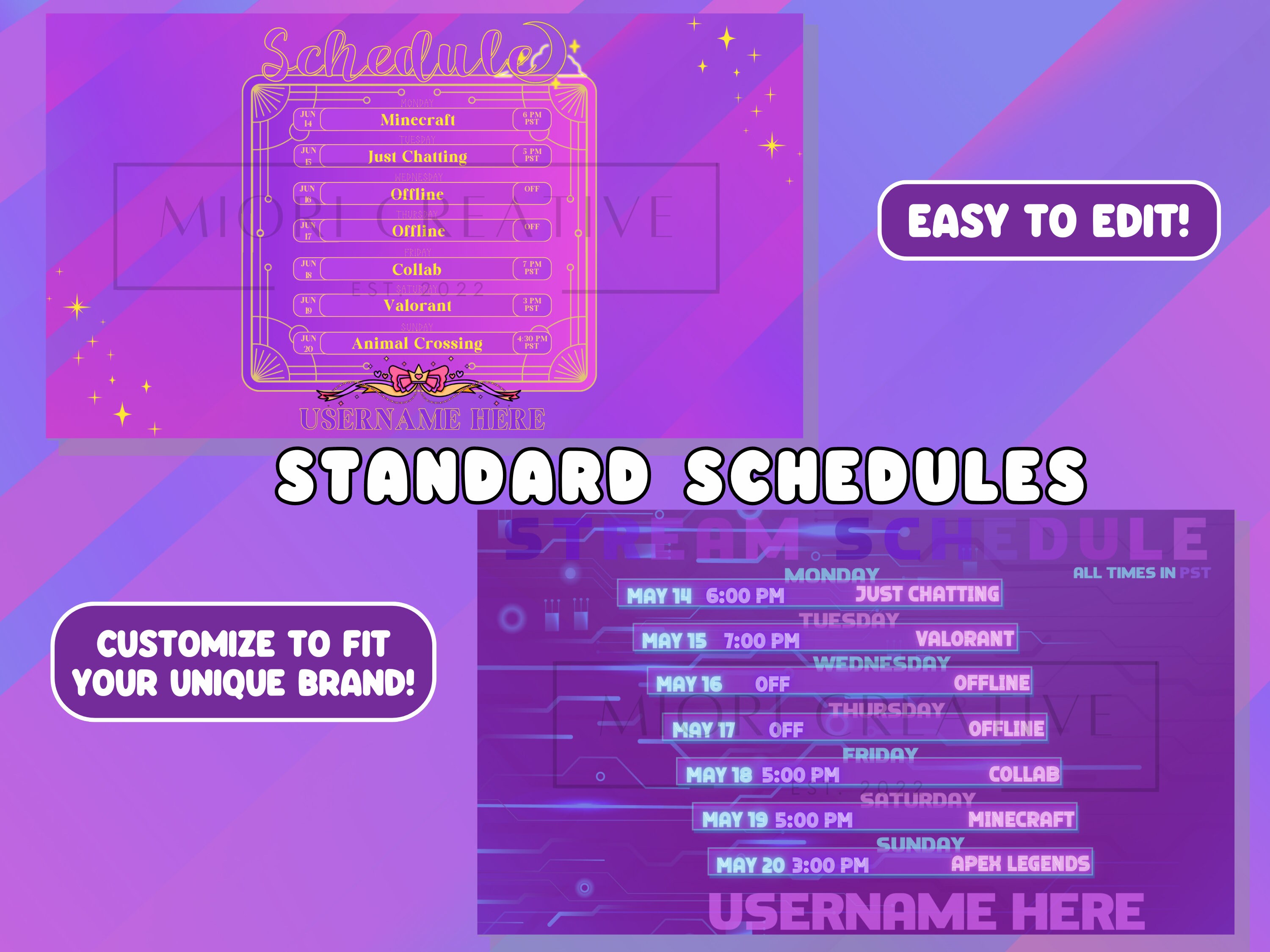 2 pack magic vtuber schedule template cute stream schedule vtuber asset