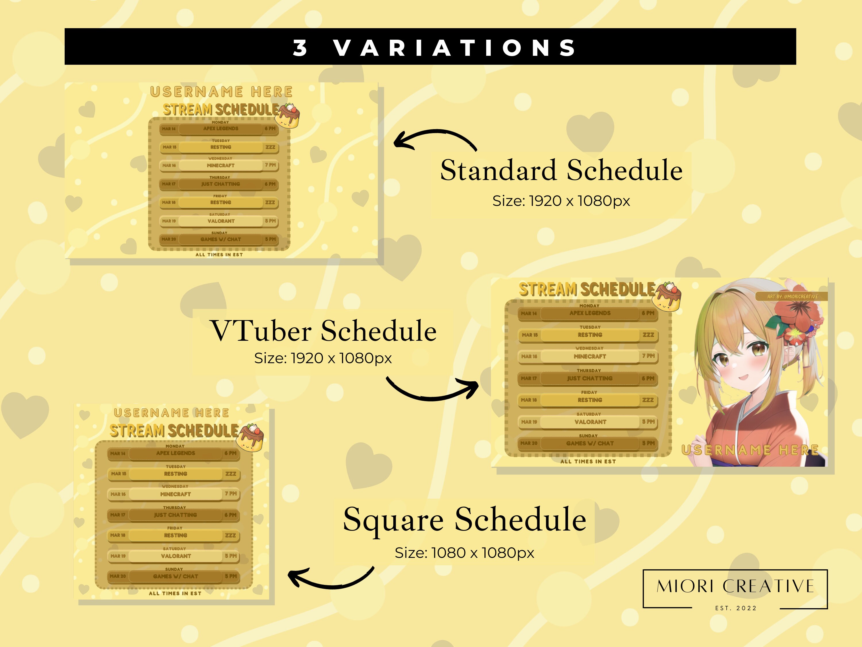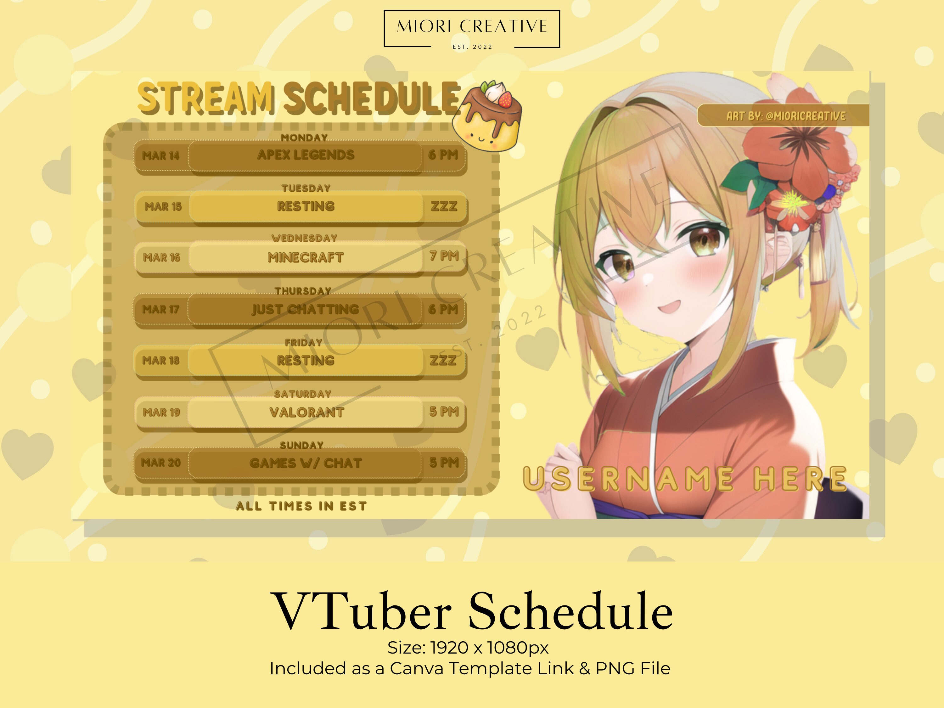 Yellow Vtuber Schedule Template Cute Vtuber Twitch Schedule Etsy
