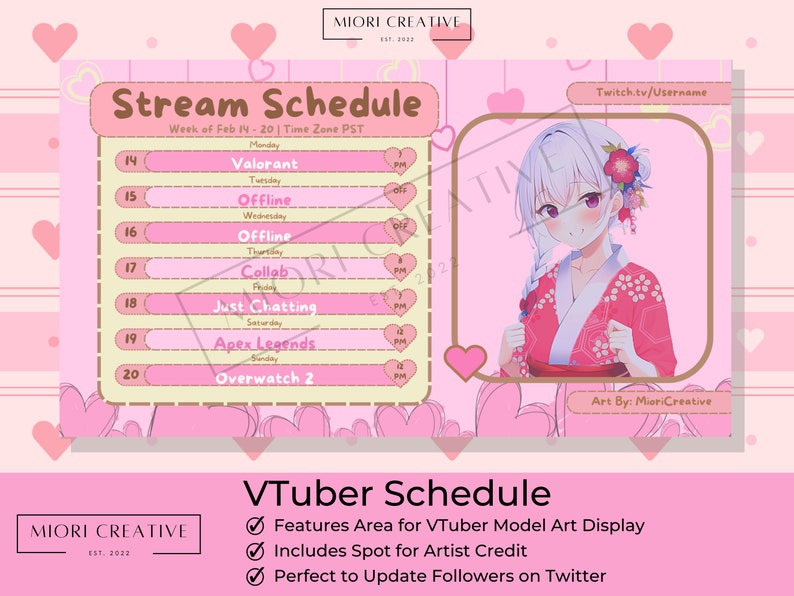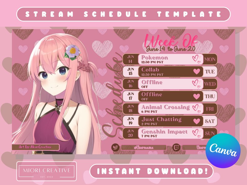 Heart vtuber schedule template pink stream schedule template etsy Artofit