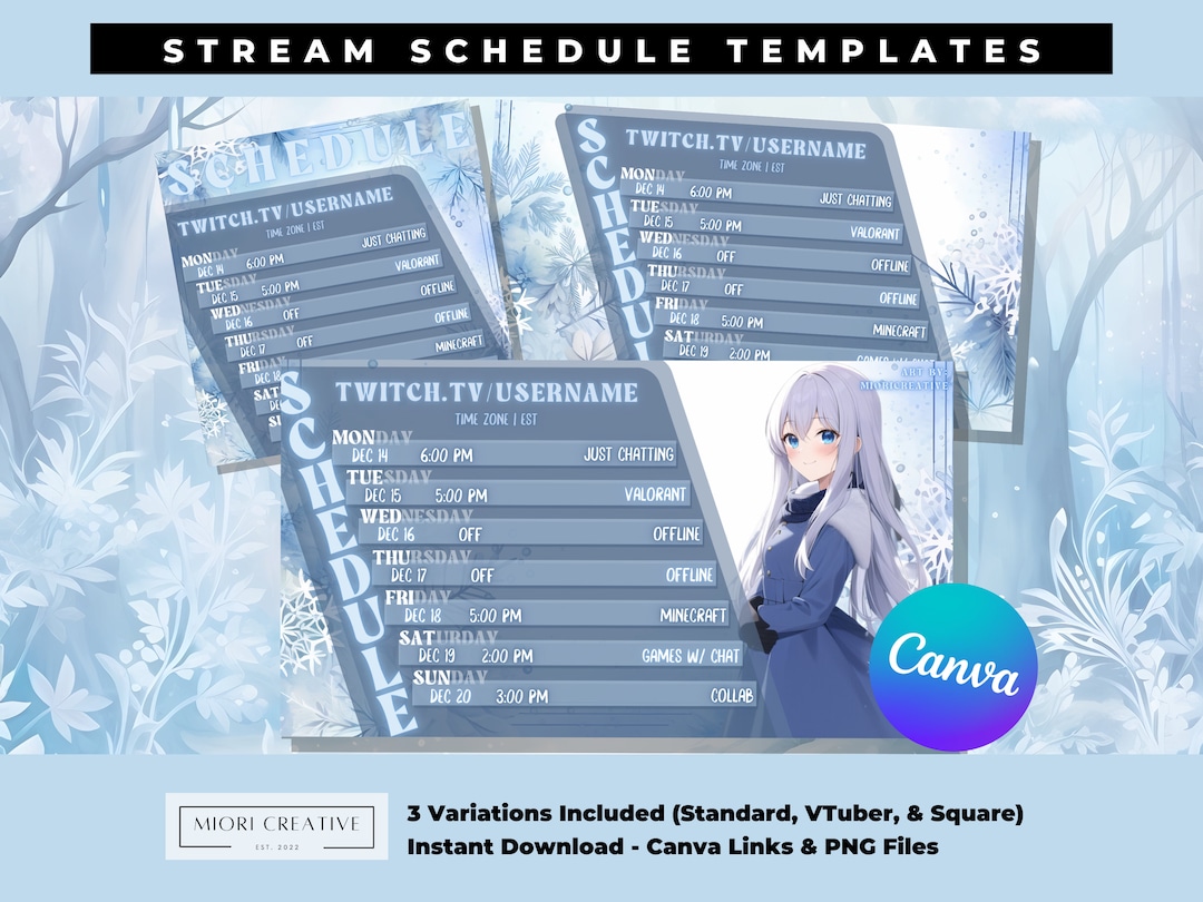 Winter Vtuber Schedule Template Bundle Twitch Weekly Stream Schedule