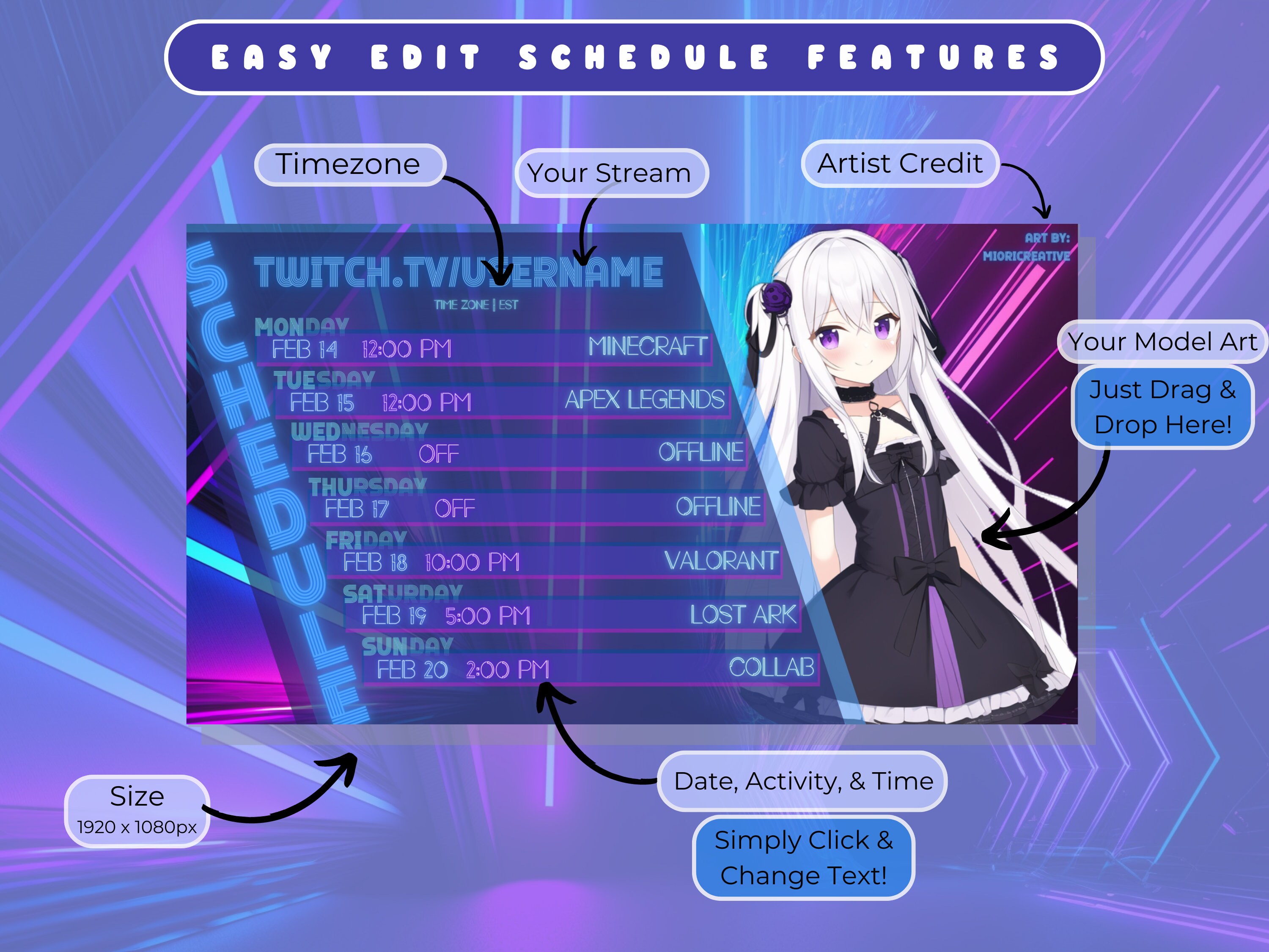 Neon Vtuber Schedule Template Twitch Schedule Purple Pngtuber Schedule