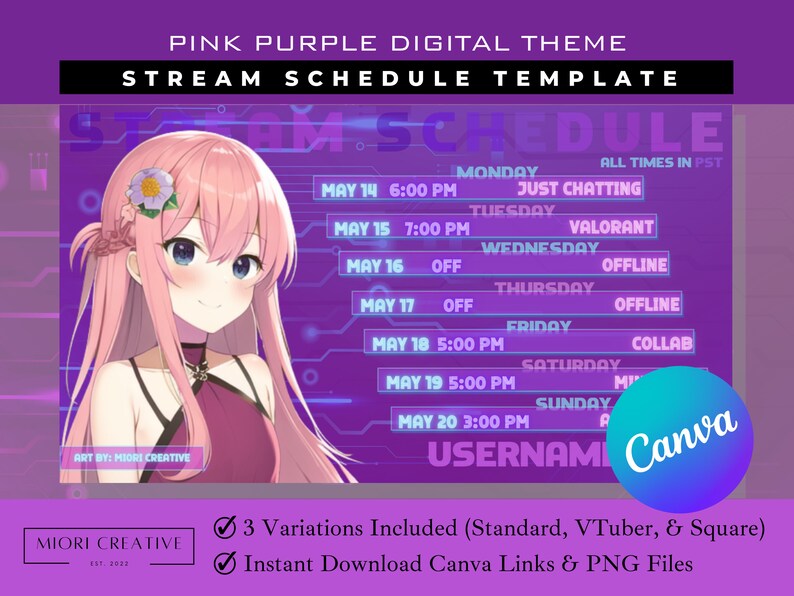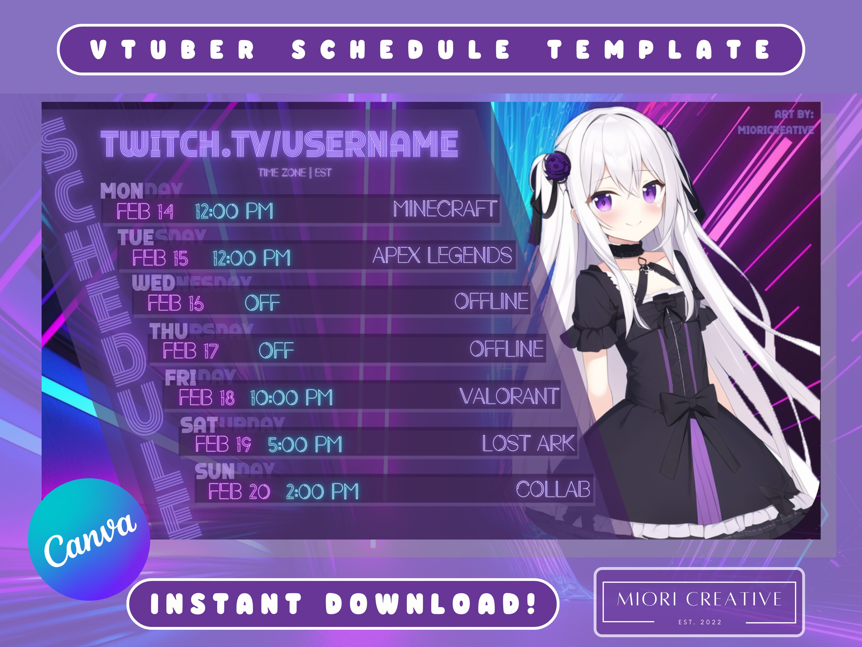 Vtuber Schedule Stream Schedule Vtuber Assets Canva Editable Template
