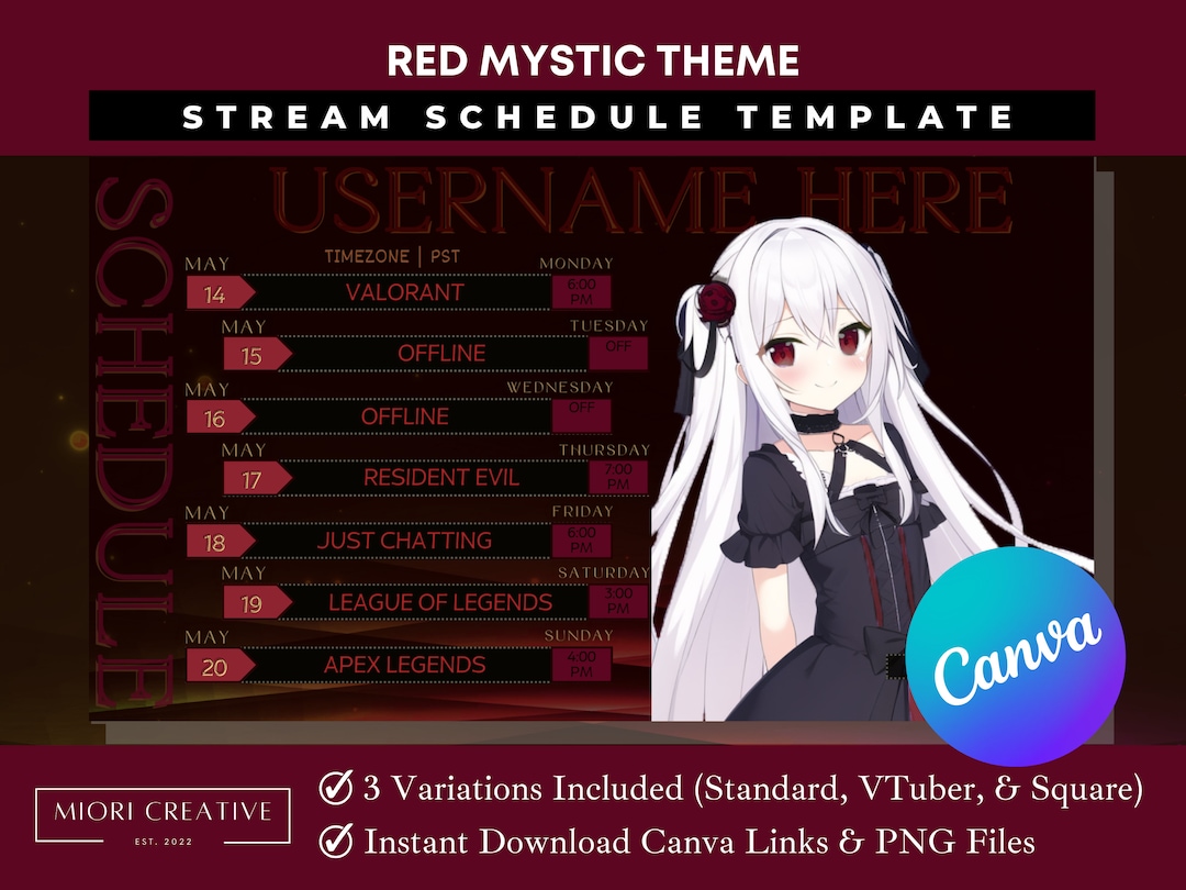 Red Vtuber Schedule Template Pngtuber Stream Schedule Vtubers Etsy