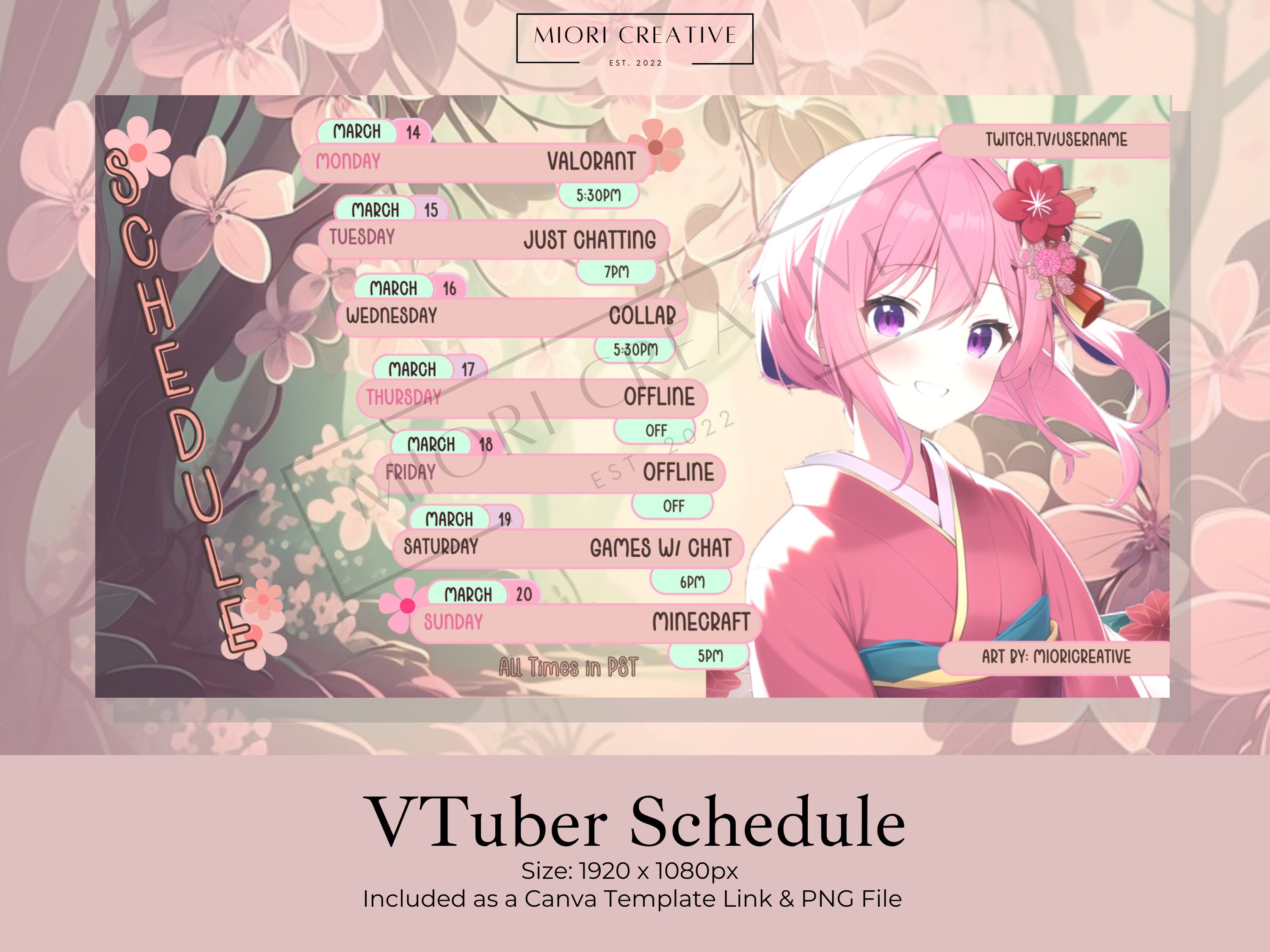 Twitch Schedule Template Sakura Vtuber / Streamer Graphics / Etsy