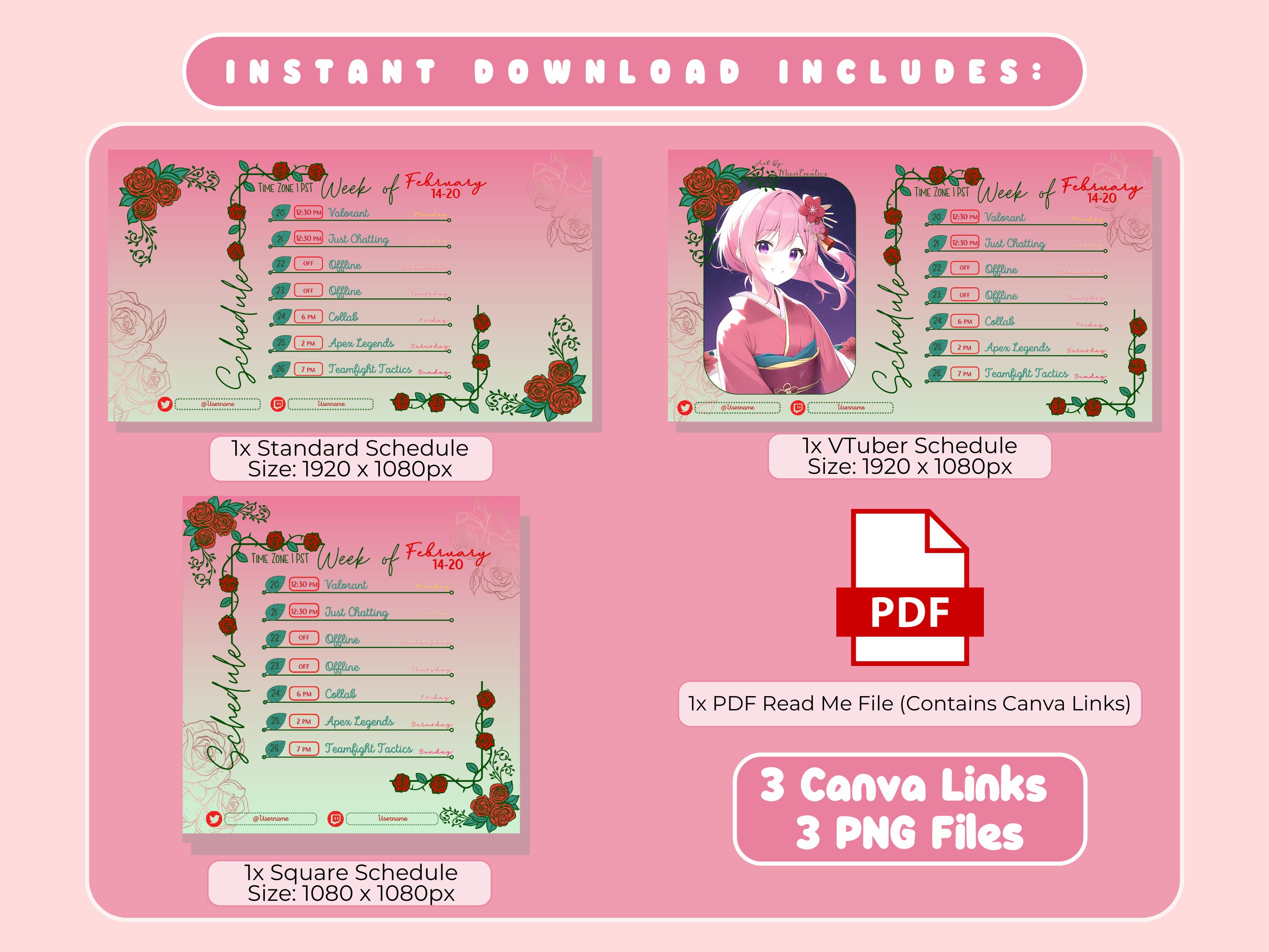 Rose Vtuber Schedule Template Stream Schedule Vtubers Stream Etsy