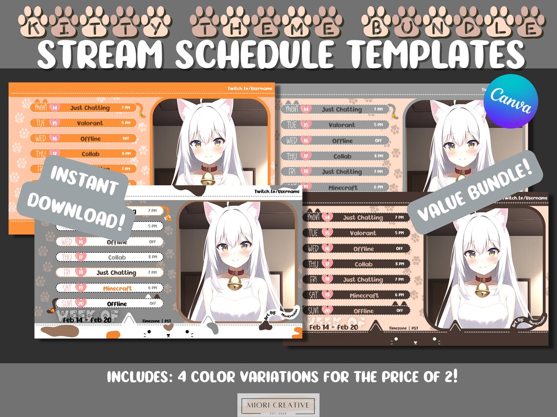 Cat Vtuber Schedule Template Bundle Twitch Stream Schedule Etsy