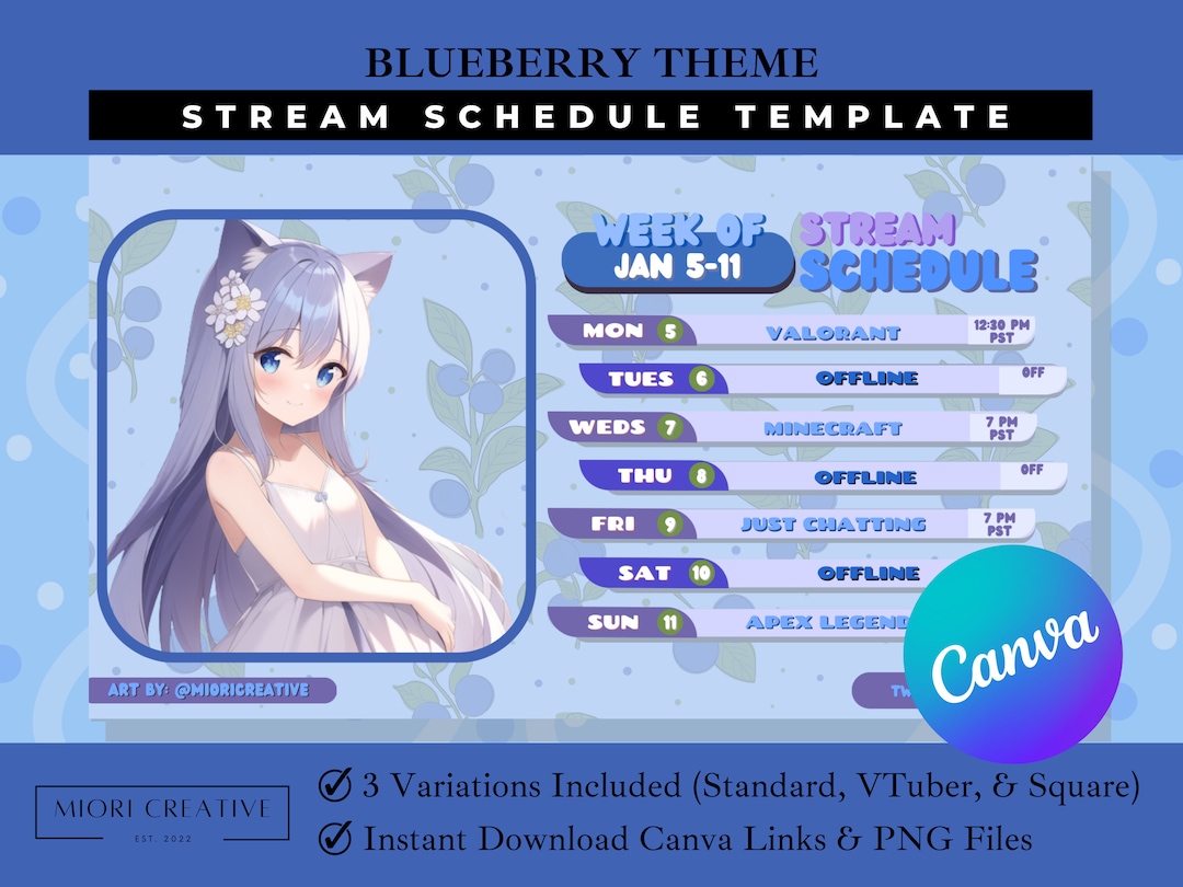 Blue Vtuber Schedule Template Twitch Stream Schedule Vtuber Etsy